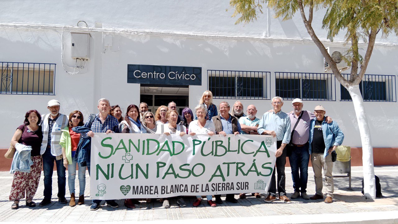 Pedrera ha acogido, este sábado, una reunión de la Coordinadora Andaluza de Mareas Blancas con el objetivo de elaborar un nuevo plan de acción para defender el sistema sanitario andaluz y conseguir la derogación completa de la Orden del 23 de febrero que permite concertar la atención primaria con la sanidad privada. Una reunión celebrada en el Centro Cívico El Pilar, donde acudieron el Alcalde de Pedrera, Antonio Nogales, acompañado por Lucía Ruiz, Teniente de Alcalde, para saludar y agradecer a los miembros de la Marea Blanca este encuentro que pretendía mostrar apoyo a la Sierra Sur por la situación sanitaria que atraviesan.