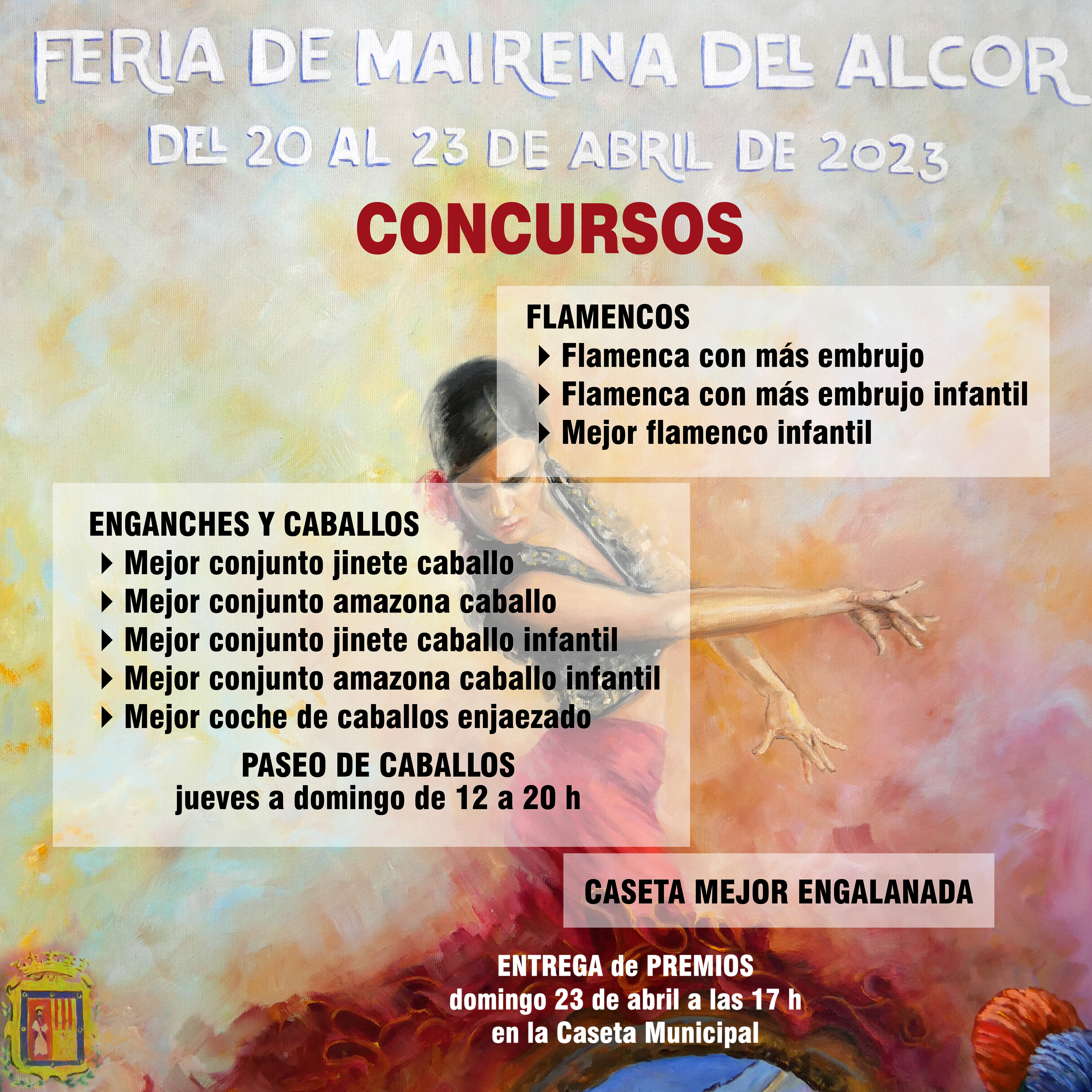 Entrega de premios por miembros de la Corporación Municipal, el domingo de Feria a las 17 horas en la caseta municipal.