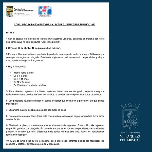 Por tercer año consecutivo ponemos en marcha este concurso para fomentar la lectura entre los usuarios y usuarias de nuestra biblioteca.