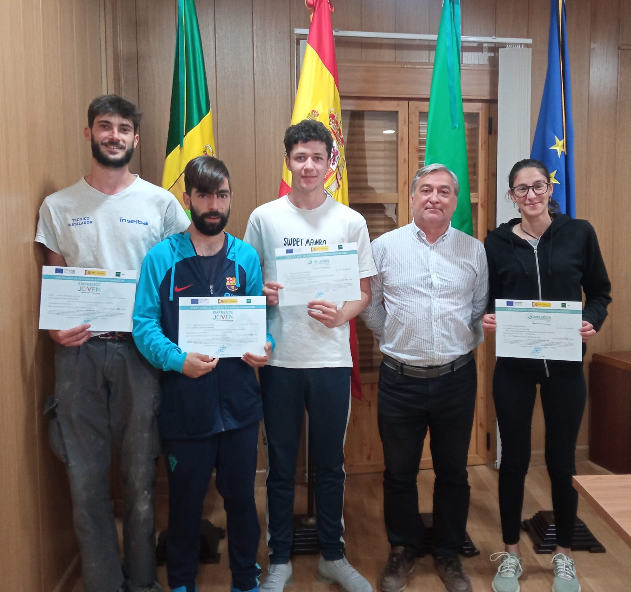 En la tarde de ayer el alcalde, José Antonio López, hizo entrega de 19 títulos a los jóvenes ronquilleros participantes en dos de las formaciones desarrolladas en El Ronquilllo a través del Programa Emprende Joven de Prodetur el pasado año: