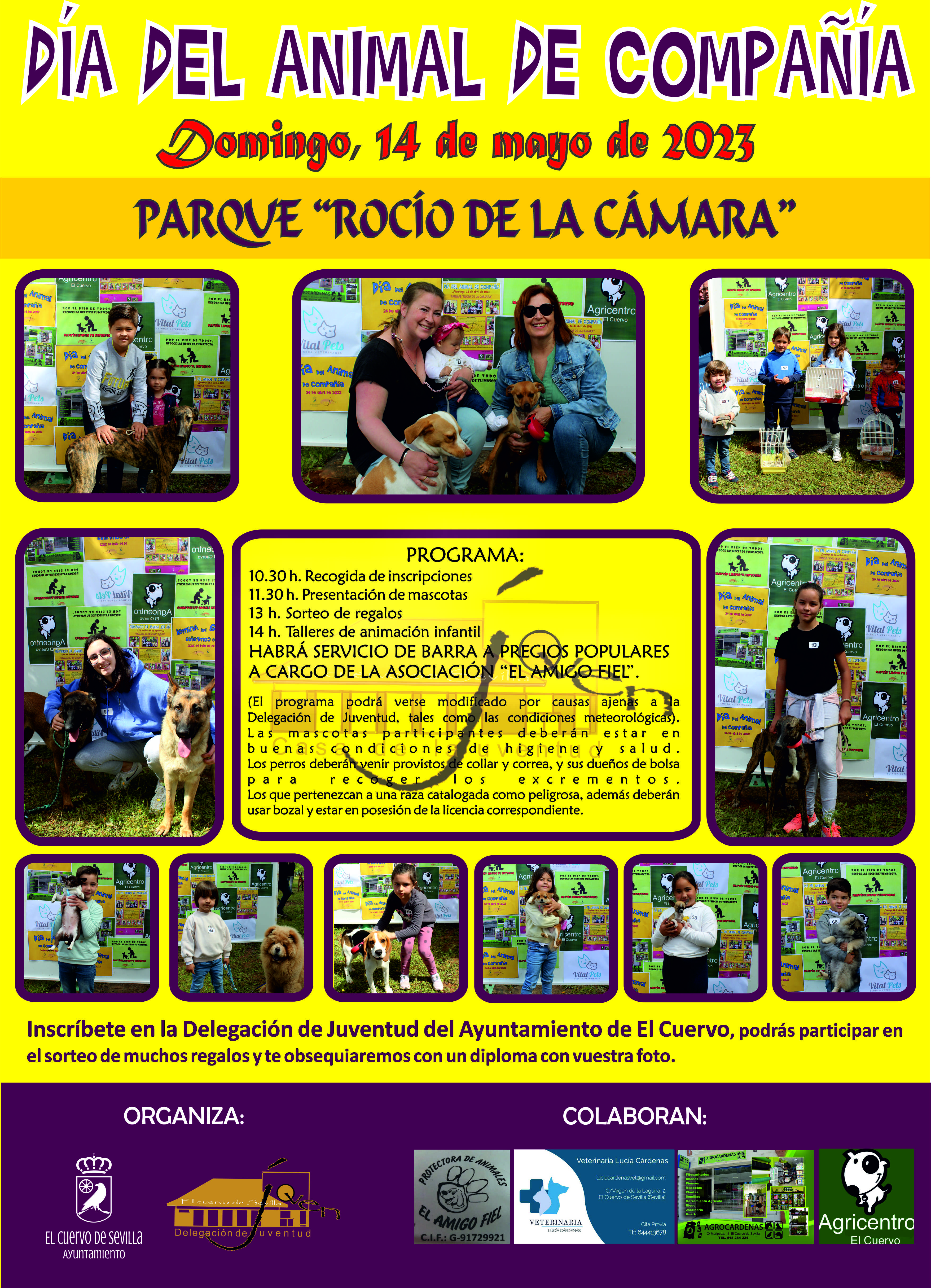 MUY IMPORTANTE: Los animales de compañía participantes deberán estar en buenas condiciones de higiene y salud. Los perros deberán venir provisto de collar y correo, además de que sus dueños vengan con bolsas para la recogida de excrementos.
