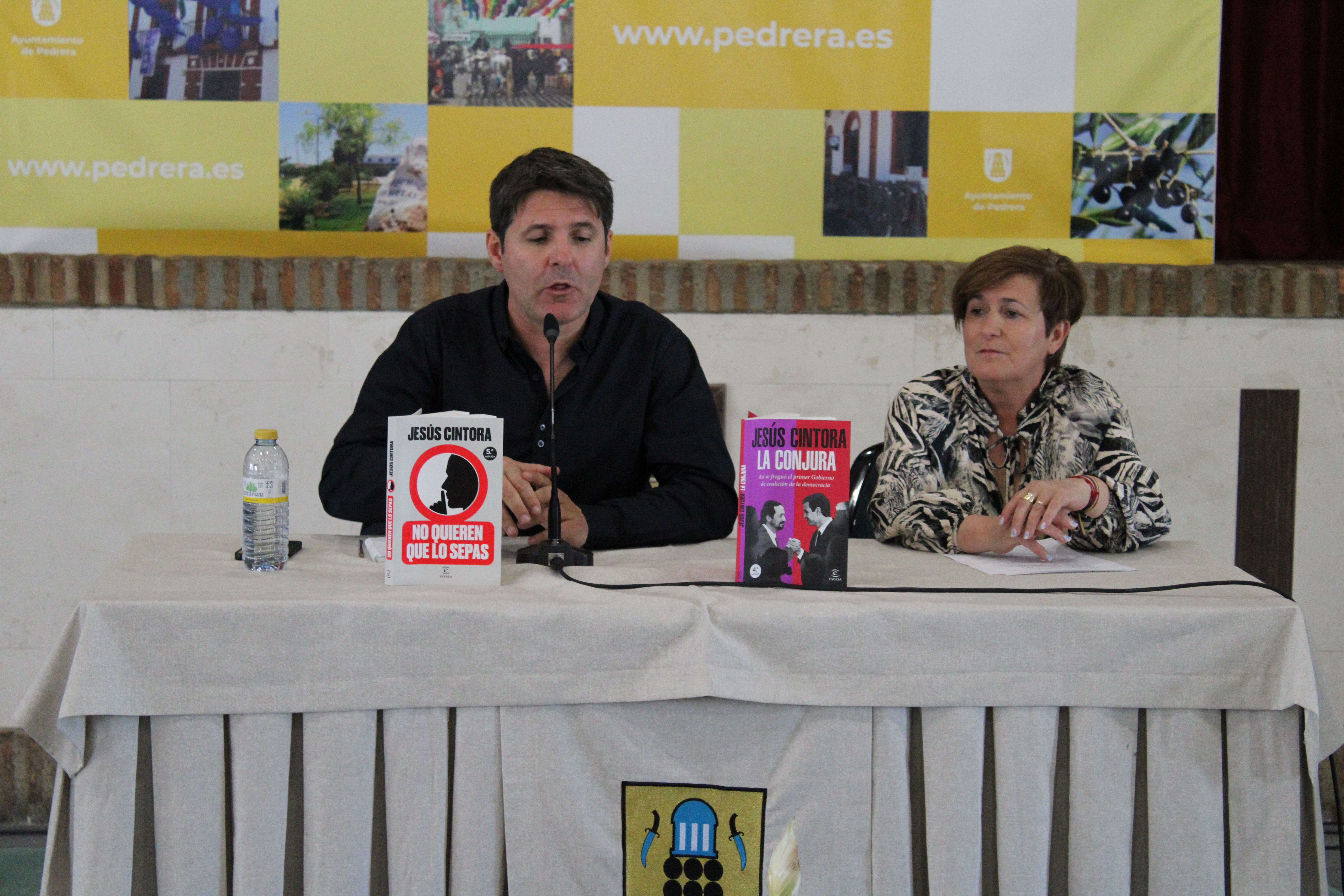 El periodista y escritor Jesús Cintora, uno de los referentes del periodismo político y social en España, ha presentado, este domingo, en Pedrera sus dos libros, "La Conjura" y "No quieren que lo sepas", este último figura entre los más vendidos de España en la categoría de no ficción desde que salió a la venta.