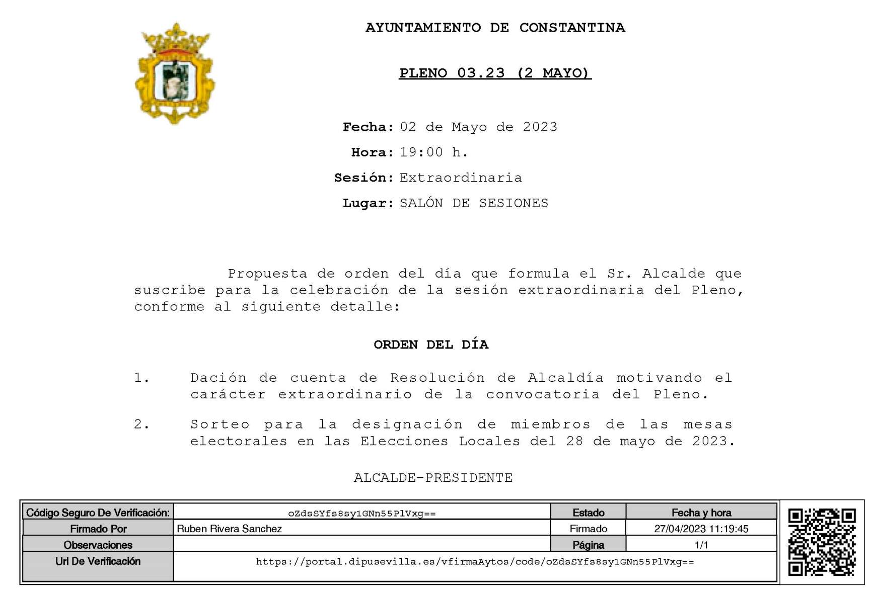 PLENO EXTRAORDINARIO CONSTANTINA (Propuesta Orden del Día)