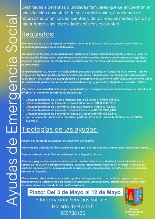 Se vuelve a abrir el plazo para la solicitud de ayudas de emergencia social destinadas a personas o unidades familiares que se encuentran en una situación coyuntural de crisis sobrevenida, careciendo de recursos económicos suficientes para hacer frente a las necesidades básicas existentes. El plazo de presentación de solicitudes será del 3 al 12 de Mayo