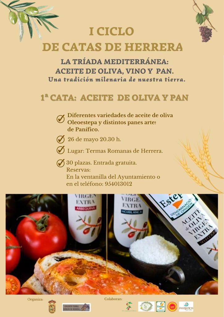 El Ayuntamiento de Herrera organiza para el próximo viernes 26 de mayo el I Ciclo de Catas, que se denominará "La triada mediterránea: aceite de oliva, vino y pan".