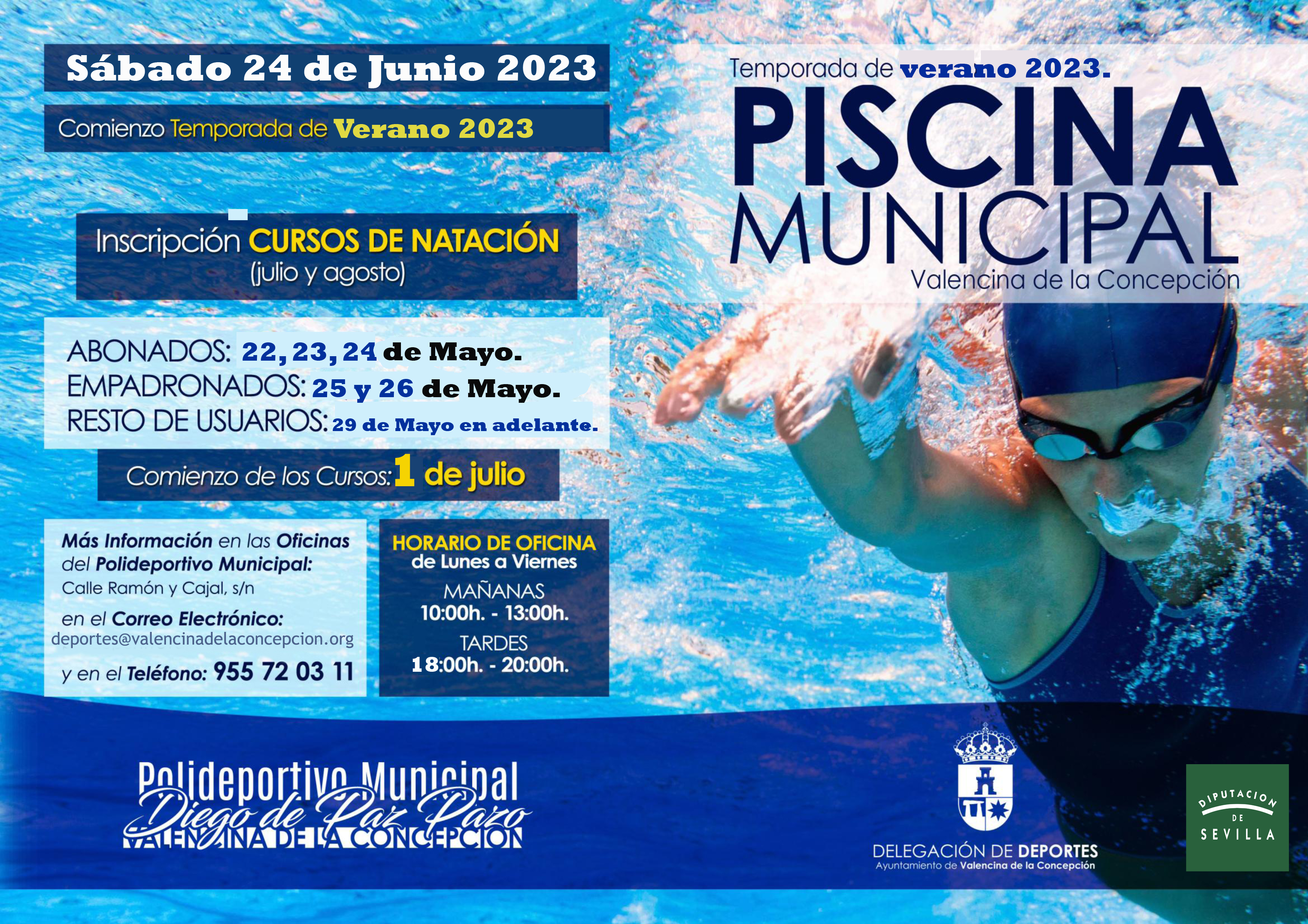Más Información en las Oficinas del Polideportivo Municipal C/ Ramón y Cajal, s/n o en el Correo Electrónico: deportes@valencinadelaconcepcion.org y en el 955 72 03 11