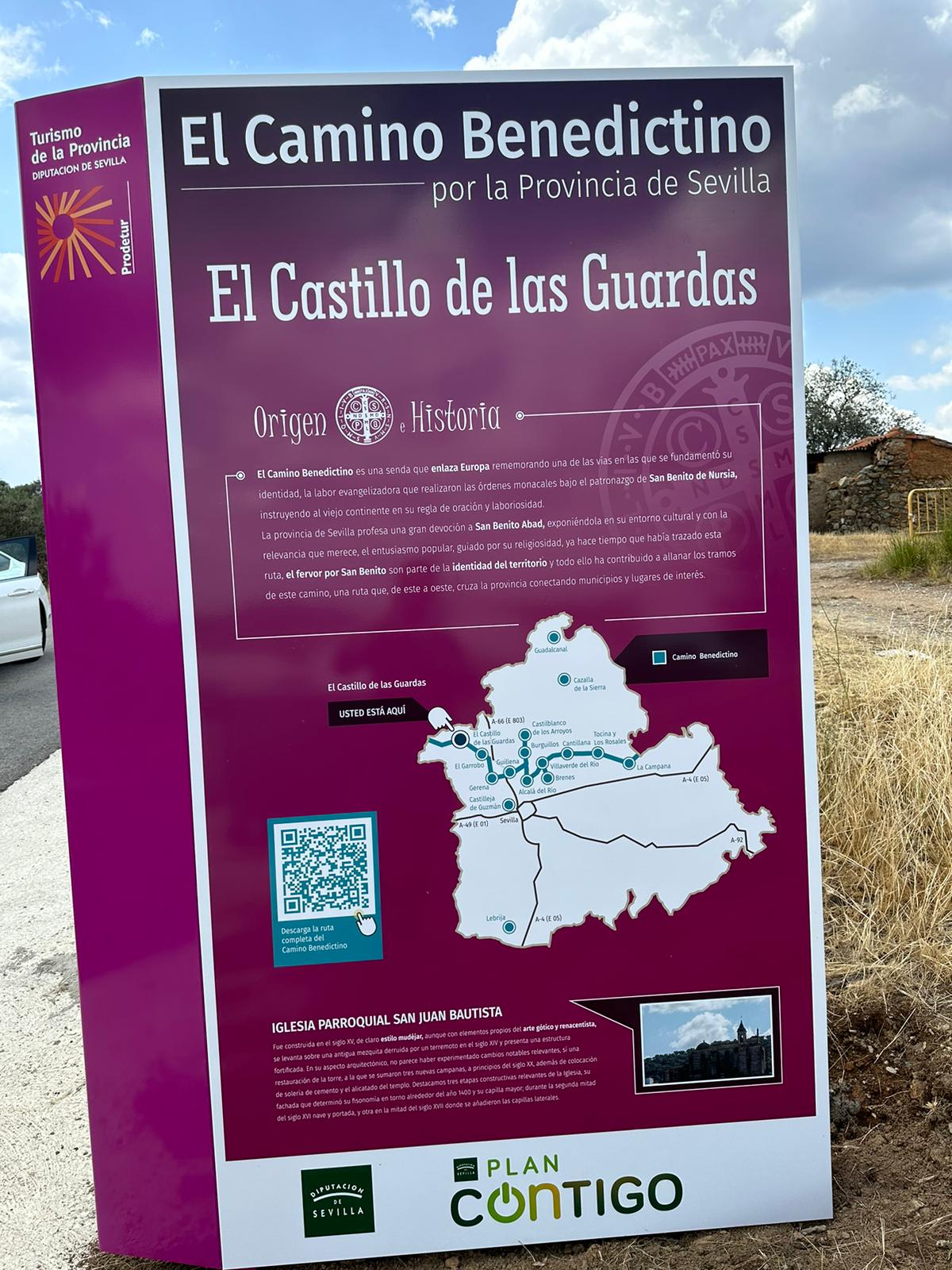 Queremos informar a todos/as nuestros/as vecinos/as que desde hoy, oficialmente El Castillo de las Guardas es punto clave del camino Benedictino, tras trabajo intenso de este Ayuntamiento con la Diputación Provincial de Sevilla, integrado el municipio en una guía realizada por la Diputación, en la cual, da a conocer la amplia ruta devocional a San Benito Abad en la provincia de Sevilla.