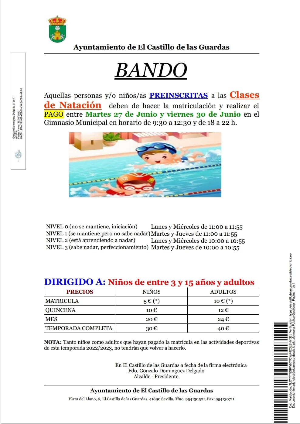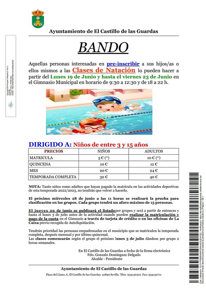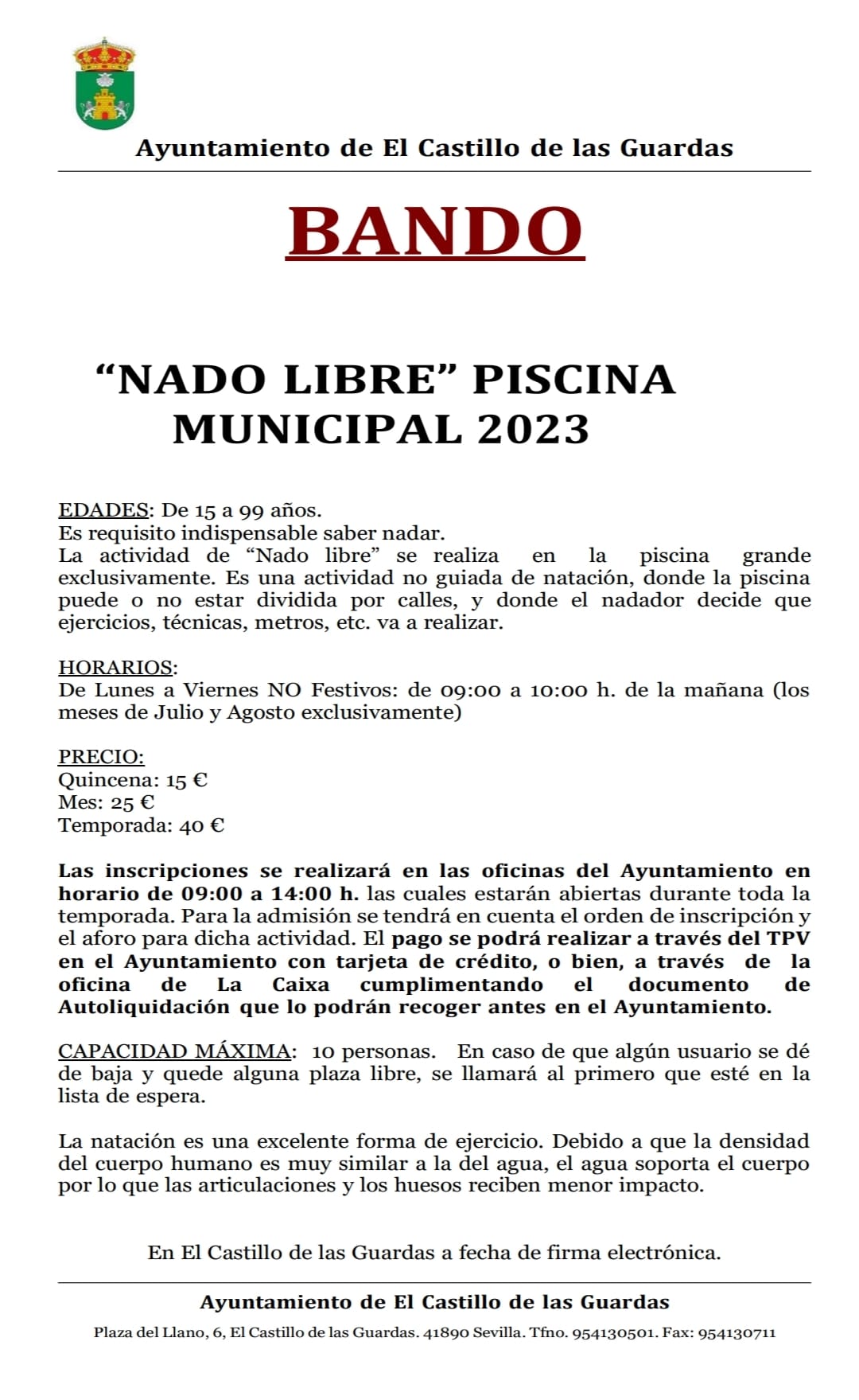 Ante la inminente llegada del verano, queremos informar de nuestra tradicional oferta deportiva en la piscina municipal.