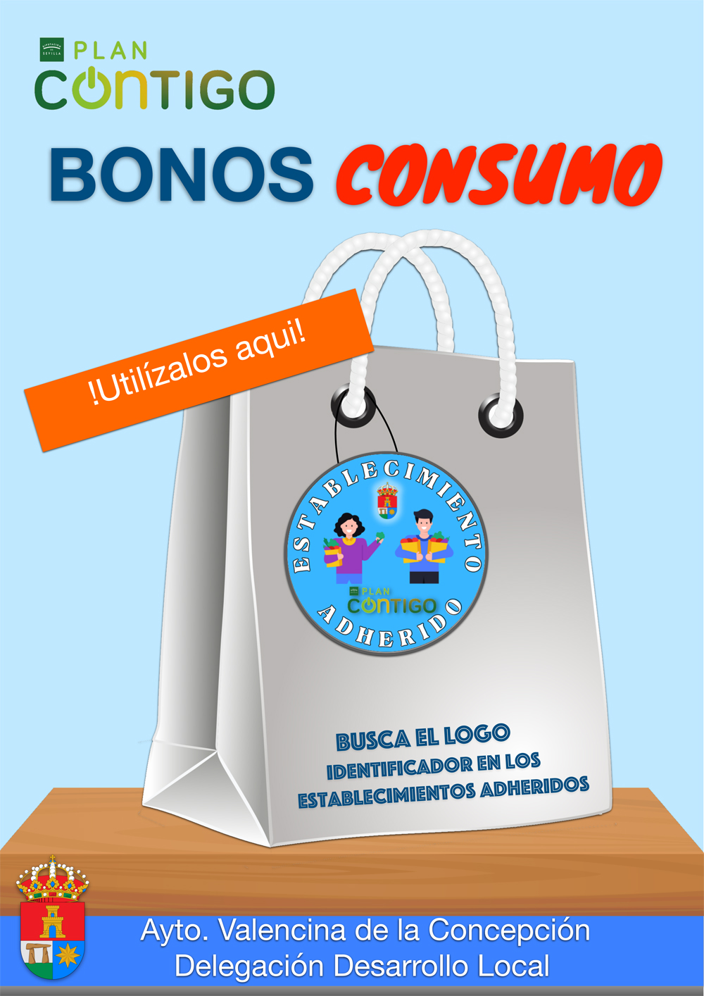 Del 17 de junio al 15 de julio de 2023, se llevará a cabo en el municipio de Valencina de la Concepción la campaña "BONOS AL CONSUMO" consistente en un "bono descuento" de 10€ en compras o servicios igual o superiores a 20€ realizado en un establecimiento adherido a la campaña.