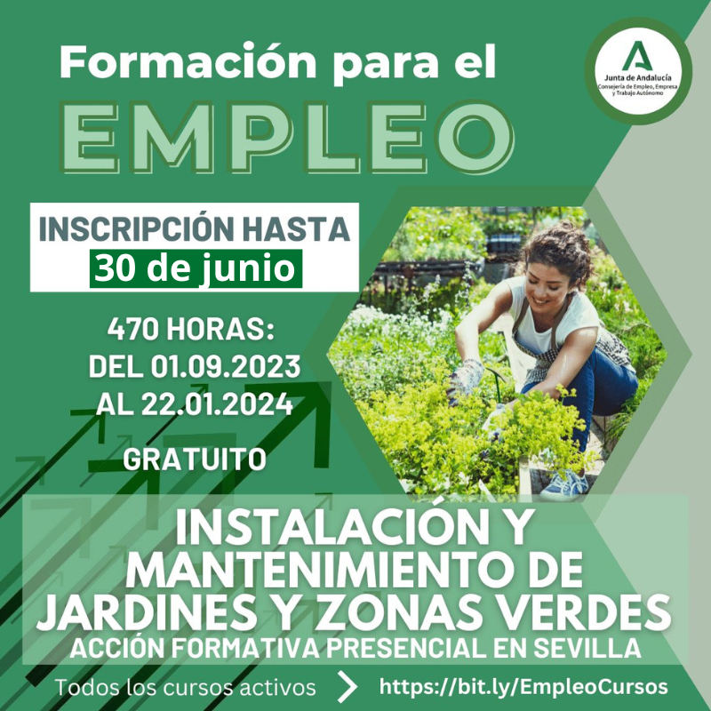 Curso gratuito de Instalación y Mantenimiento de Jardines y Zonas Verdes (acción formativa presencial).