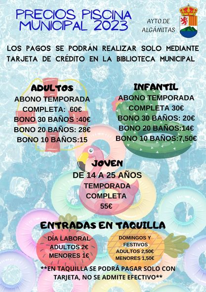 El jueves, día 27 de junio de 2023 se dará comienzo a la temporada de baños de las Piscinas Municipales a partir de las 12:00 horas. La entrada será gratuita.