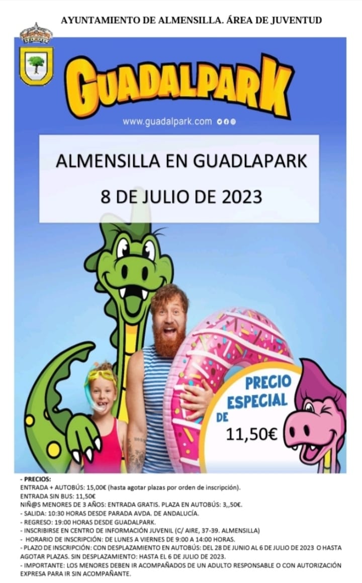 EL PRÓXIMO 8 DE JULIO, DESDE LA CONCEJALÍA DE JUVENTUD DEL AYUNTAMIENTO DE ALMENSILLA, ORGANIZAMOS UN DÍA EN GUADALPARK PARA NUESTRO PUEBLO.