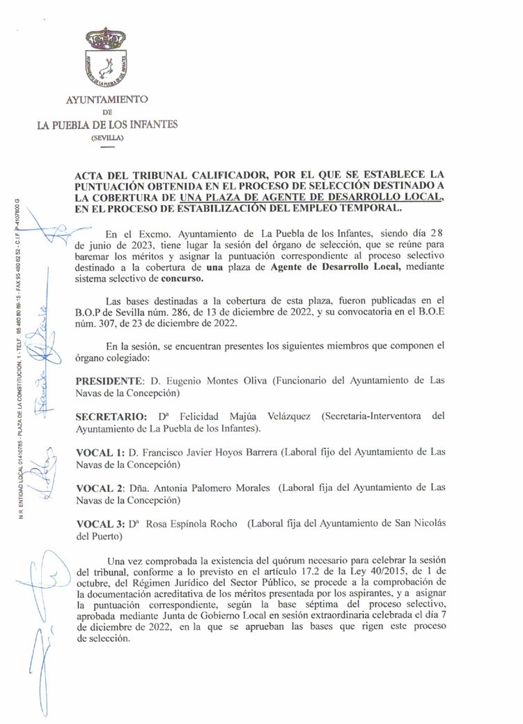 Imagen Imágenes Ubicación Categoría noticia Empleo Mostrar en el carrusel de la sección No Fecha Mié, 28/06/2023 - 11:41 Más información http://www.lapuebladelosinfantes.es/es/actualidad/noticias/Acta-del-Tribunal-Ca…