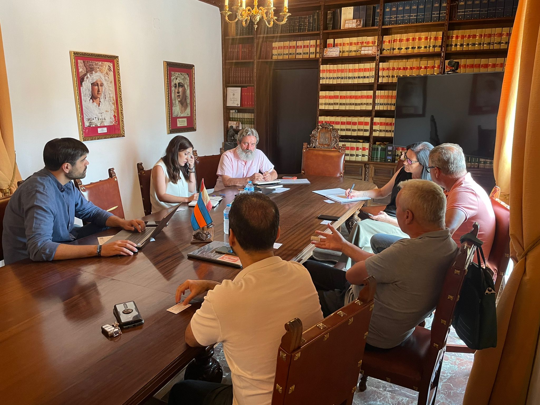 Los concejales de Urbanismo y Obras, Santiago Mauri y Ana María Guillén, se han reunido esta tarde con responsables de la empresa adjudicataria de las obras de construcción del Centro de Formación El Patriarca, la arquitecta responsable del proyecto de ejecución, Macedonia Gómez, y técnicos de la Agencia Pública de Servicios Urbanos, Actividades y Urbanismo.