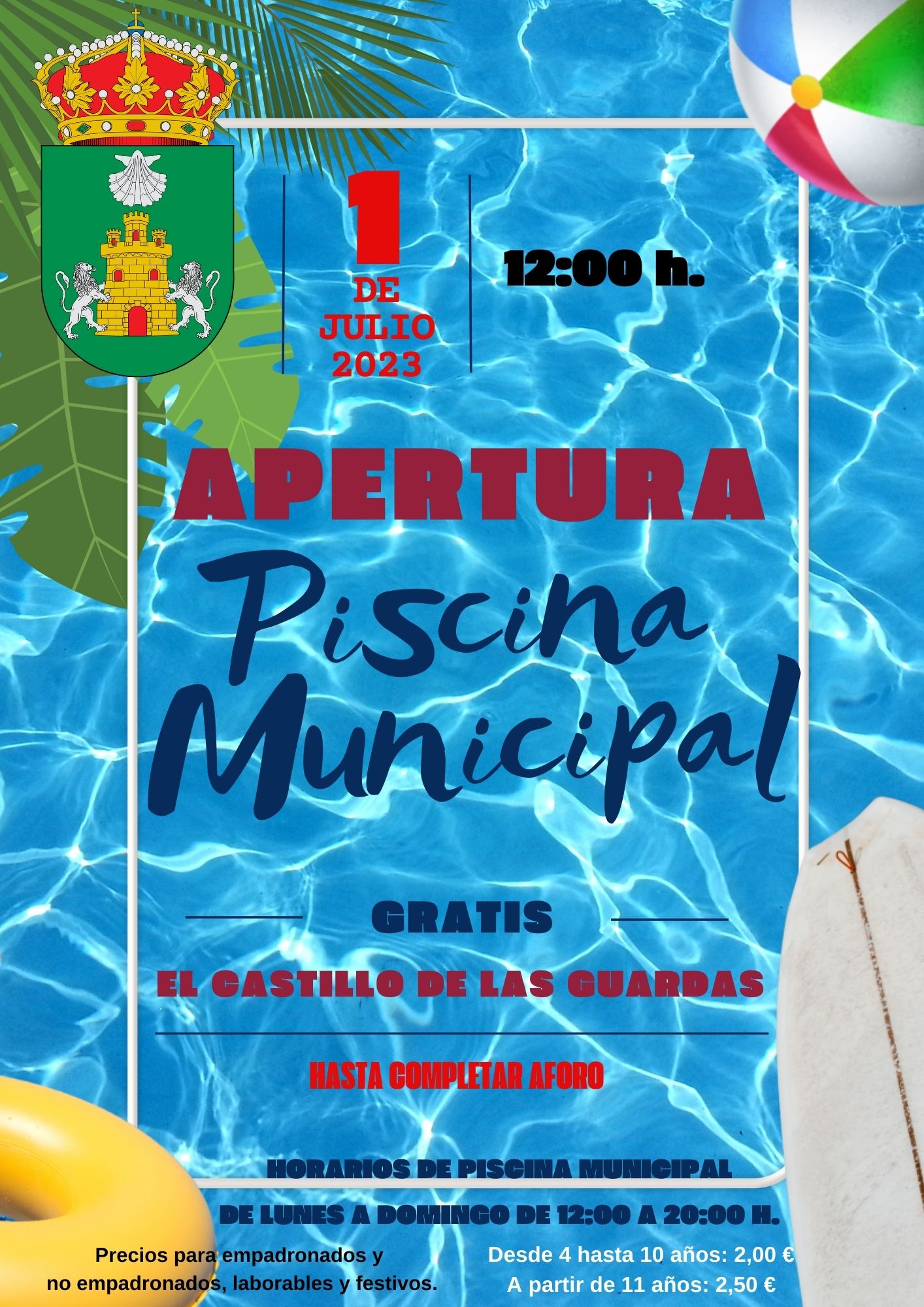Ha llegado la hora, la hora de disfrutar en nuestra Piscina Municipal, tenemos el placer de informar que MAÑANA SÁBADO 1 DE JULIO 2023 será la apertura oficial, marcando el inicio de la temporada de verano. Un lugar de esparcimiento y disfrute que se encuentra dispuesto al cien por cien para recibir a todos/as los/as bañistas.