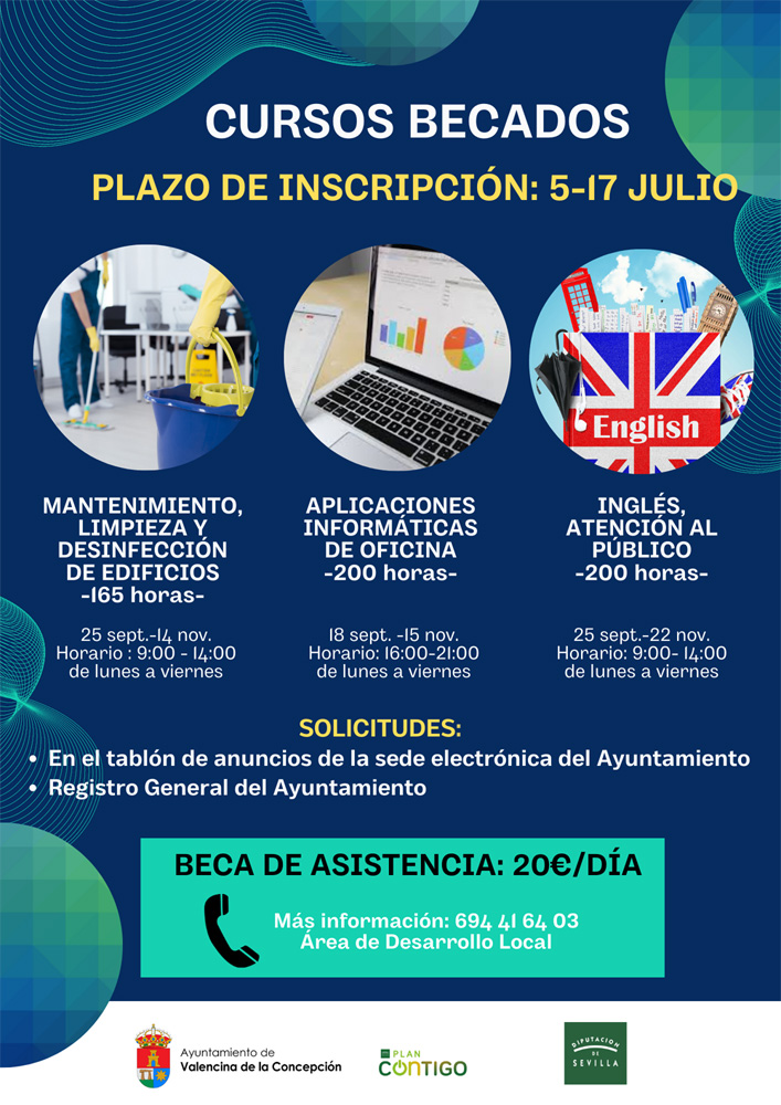 Todos estos cursos están becados con 20€ de asistencia al día