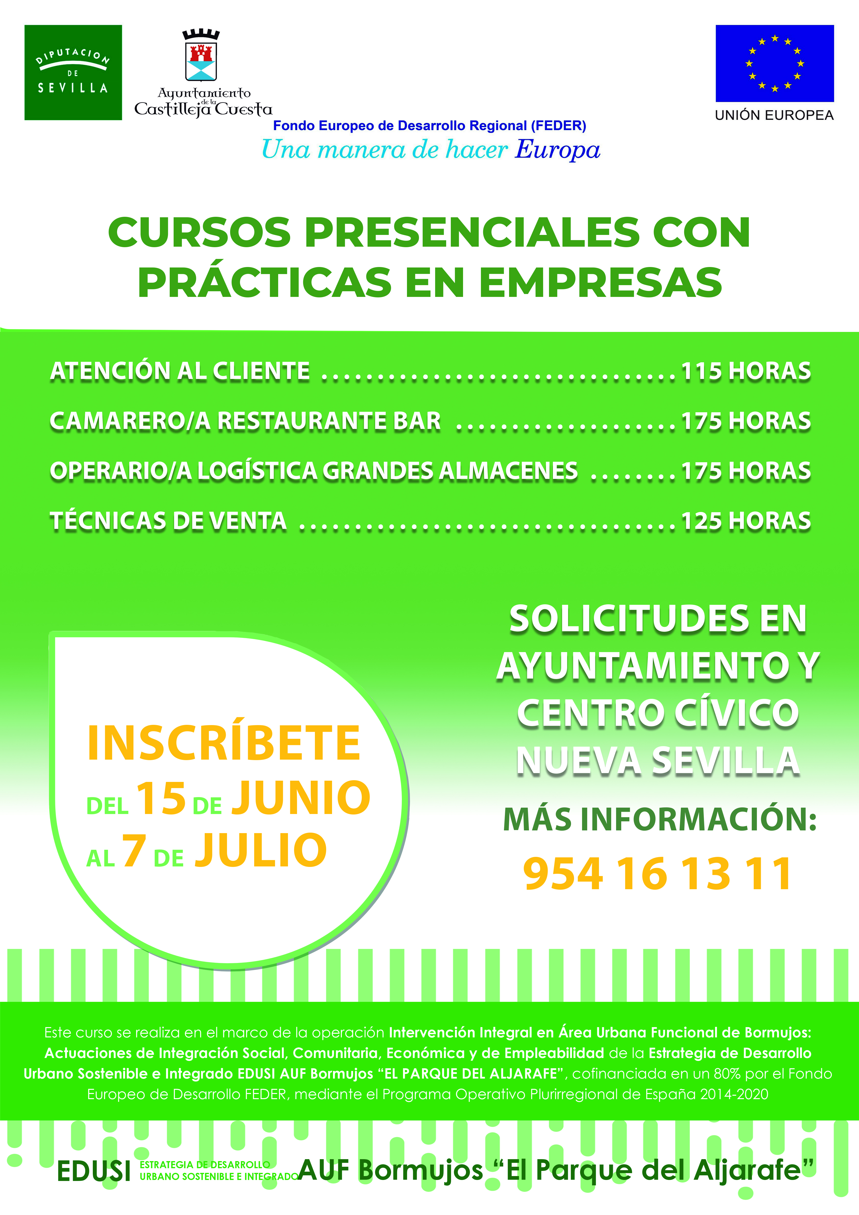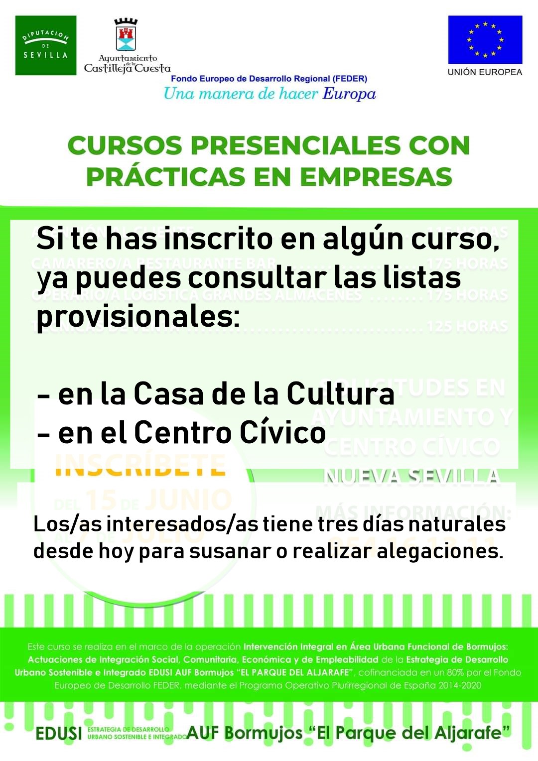 Ya están disponibles las listas provisionales de los cursos presenciales, impulsados través de los Proyectos EDUSI que lidera la Diputación de Sevilla.