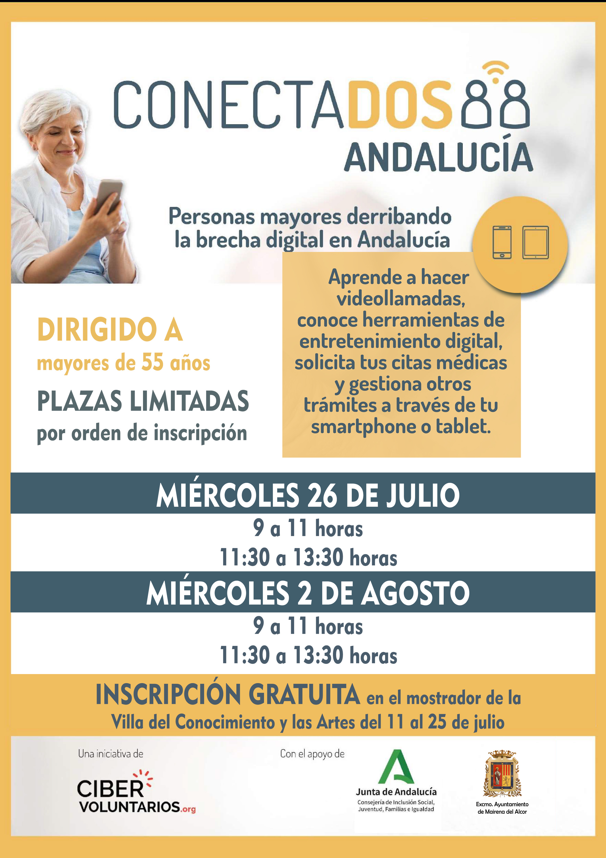 Se celebrarán 2 sesiones cada día, 26 de julio y 2 de agosto. Las plazas son limitadas, por orden de inscripción. Las inscripciones están disponibles del 11 al 25 de julio en el mostrador de la Villa del Conocimiento y las Artes.