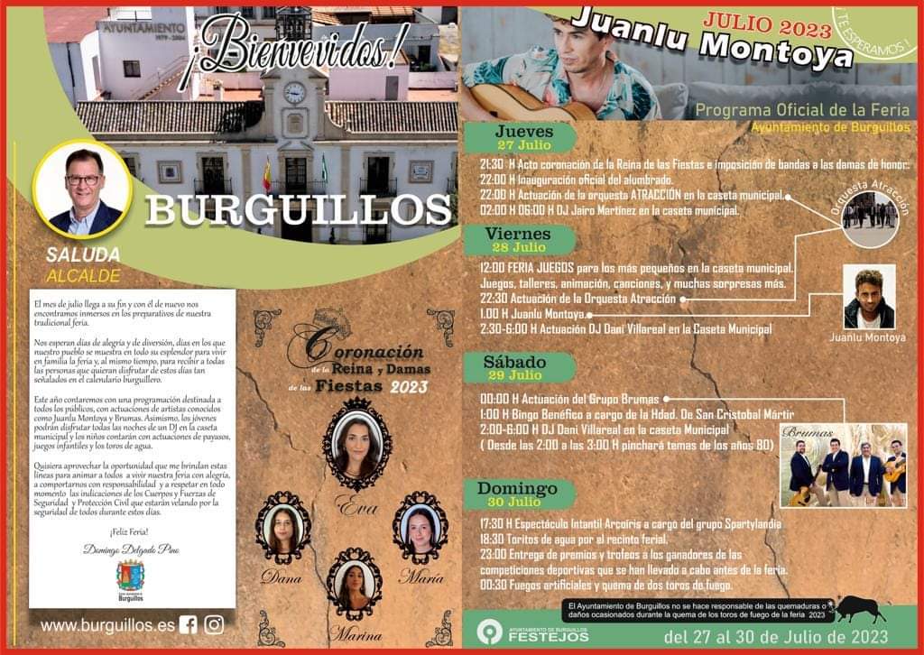 Imagen Ubicación Categoría noticia Ciudadanía Mostrar en el carrusel de la sección No Fecha Vie, 21/07/2023 - 09:22 Más información http://www.burguillos.es/es/actualidad/noticias/PROGRAMACION-FERIA-DE-BURGUILLO…