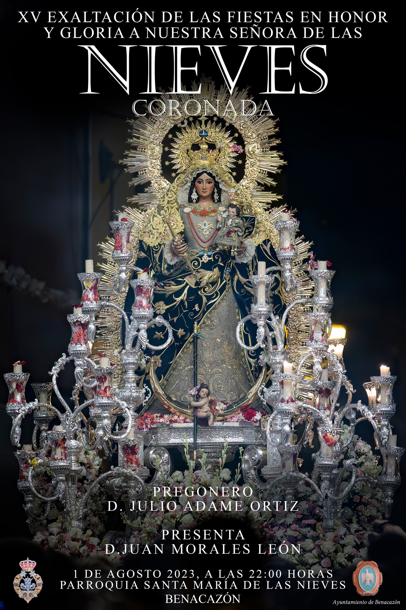 El Ayuntamiento de Benacazón informa que el martes 1 de Agosto, a las 22:00 h. en la Parroquia de Santa María de las Nieves, tendrá lugar la Exaltación de las Fiestas Patronales en Honor a nuestra Patrona, la Santísima Virgen de las Nieves.