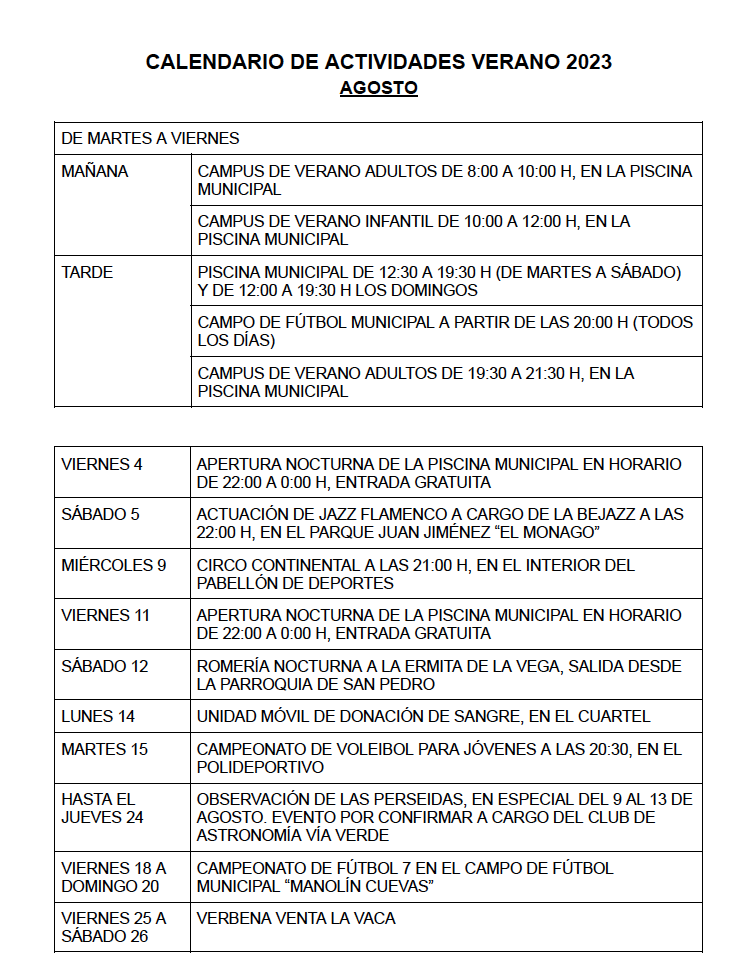 Imagen Imágenes Ubicación Categoría noticia Ciudadanía Mostrar en el carrusel de la sección No Fecha Mié, 02/08/2023 - 12:18 Más información http://www.coripe.es/es/noticias/Calendario-actualizado-de-actividades-de-veran…