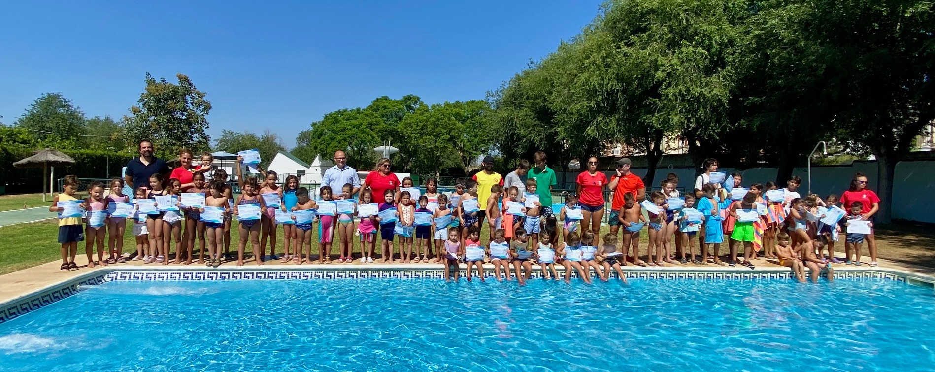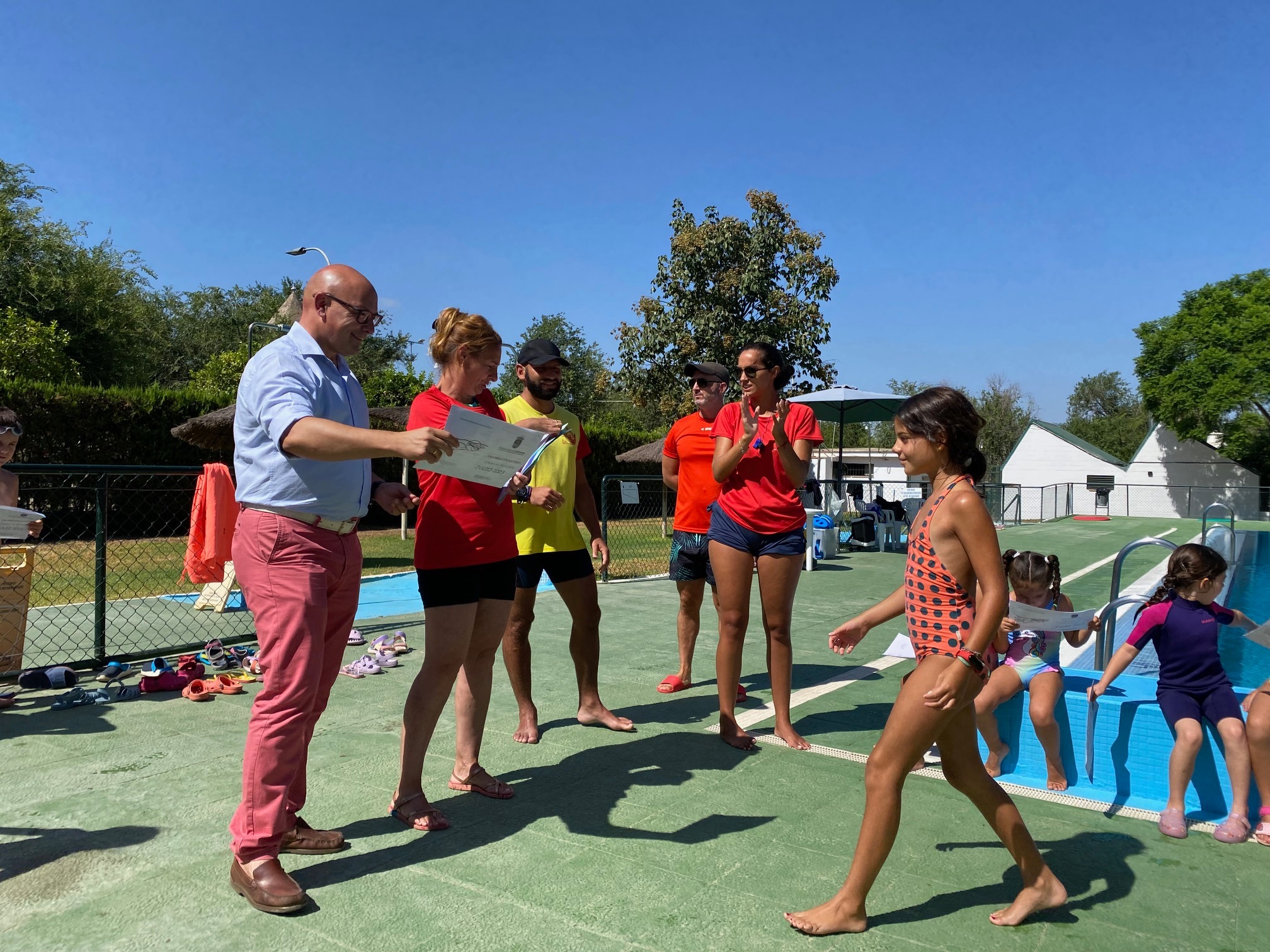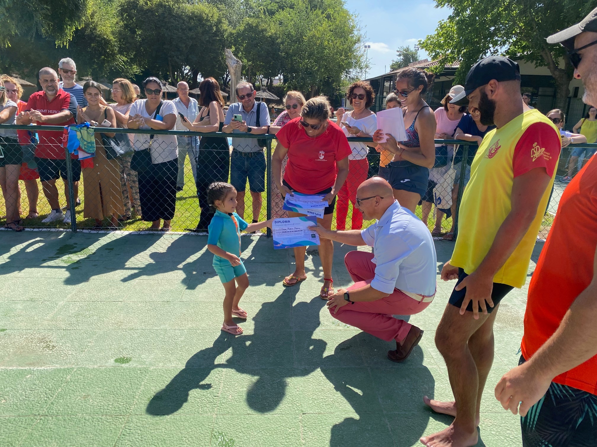 Más de medio centenar de niños y niñas de Valencina recibieron ayer de manos del Concejal de Deportes José Antonio Ciero su diploma de aprovechamiento del curso celebrado a lo largo del mes de julio.