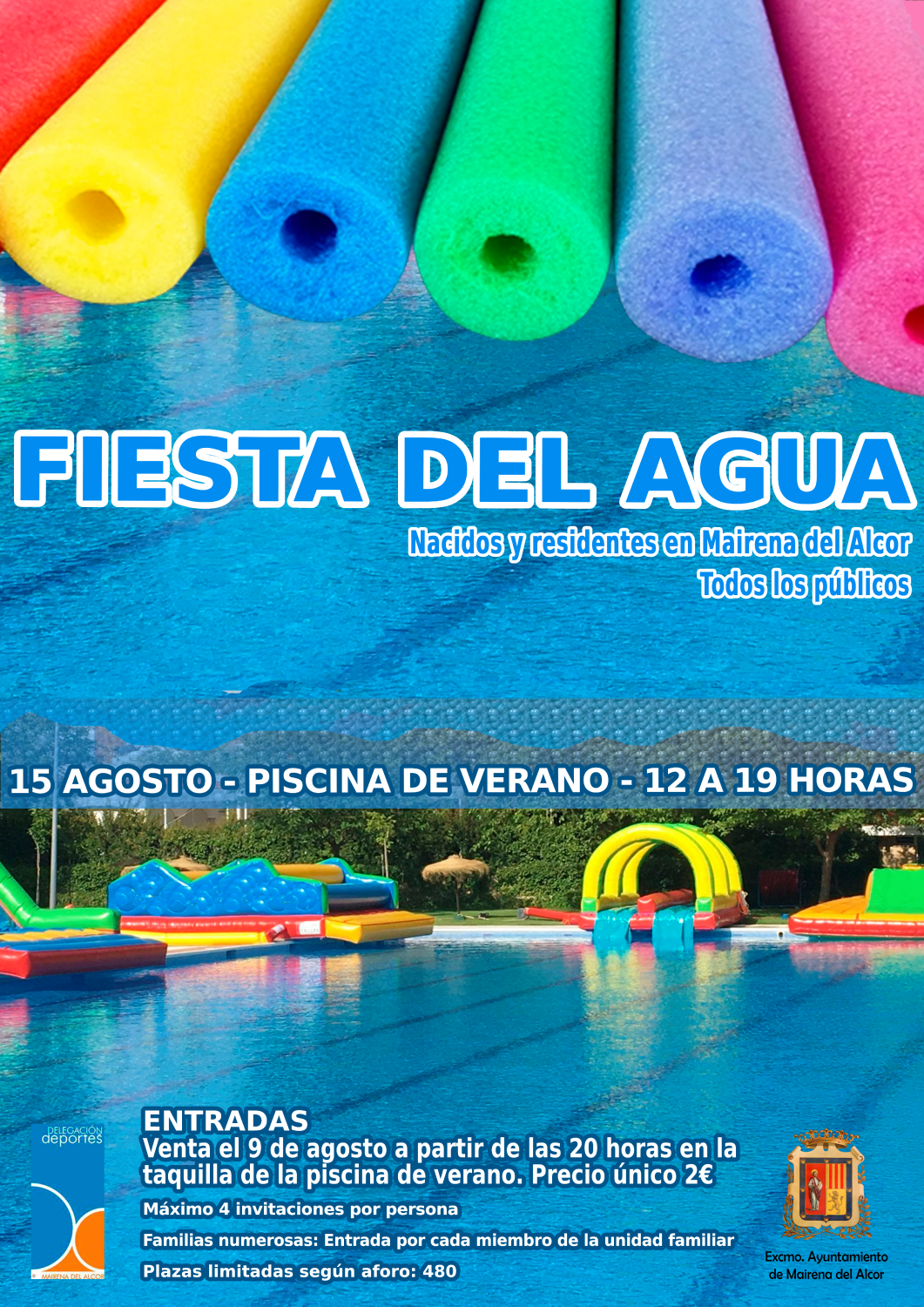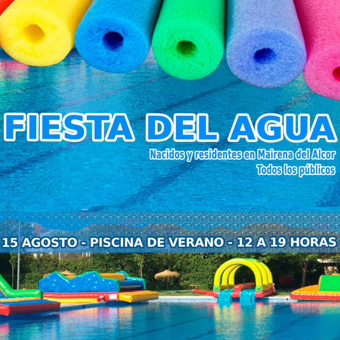 El concejal de Deportes, Javier Rojas, ha anunciado una nueva edición de la Fiesta del Agua en la piscina de verano "será el 15 de agosto de 12 a 19 horas con animación y castillos hinchables acuáticos. Esta actividad es para nacidos y residentes en Mairena del Alcor, apta para todos los públicos".