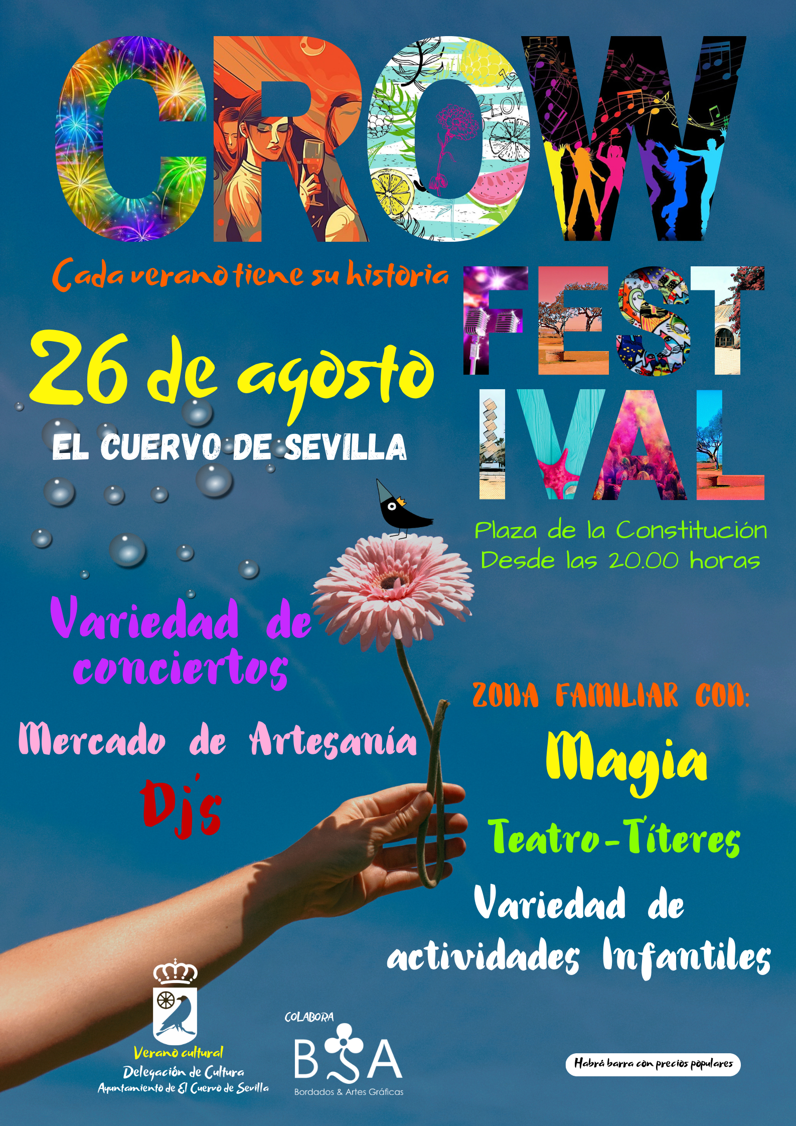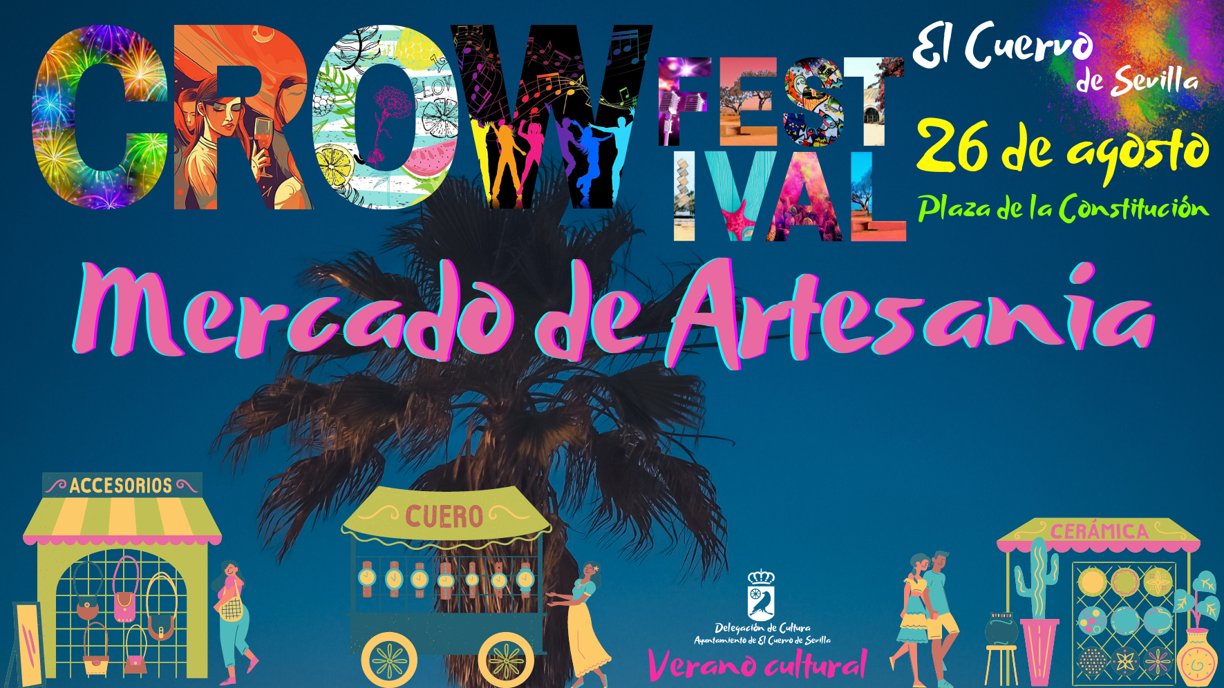 1.- El Mercado de Artesanía. Crow Festival 2023 se celebrará el Sábado 26 de agosto de 2023 en la calle de acceso a la Plaza de la Constitución de El Cuervo.