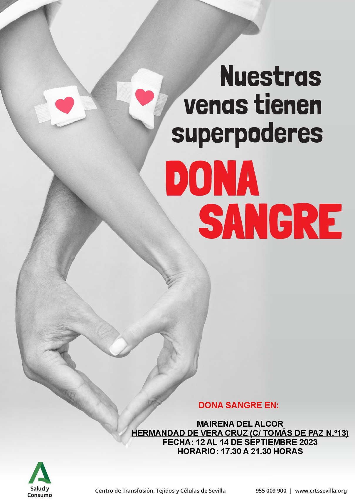 El Centro de Transfusión, Tejidos y Células de Sevilla organiza una nueva campaña de donación de sangre en la casa hermandad de la Vera Cruz (C/ Tomás de Paz, 13) del 12 al 14 de septiembre de 17.30 a 21.30 horas.