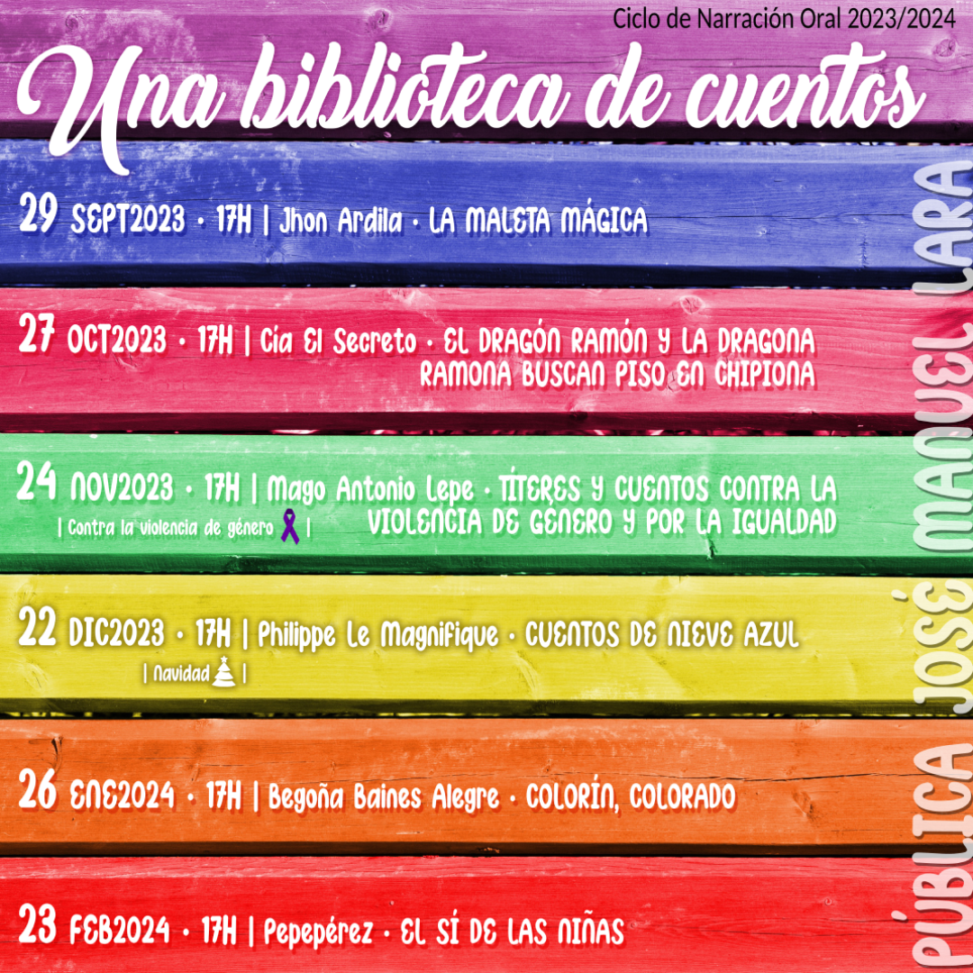 Una biblioteca de cuentos es el programa de cuentacuentos infantiles de la Delegación de Cultura, que implementa en la Biblioteca Pública José Manuel Lara entre los meses de septiembre a mayo en el marco del Ciclo de Narración Oral 2023/2024. Arranca el viernes 29 de septiembre a las 17 horas. La entrada es libre y gratuita hasta completar aforo en todas las sesiones.