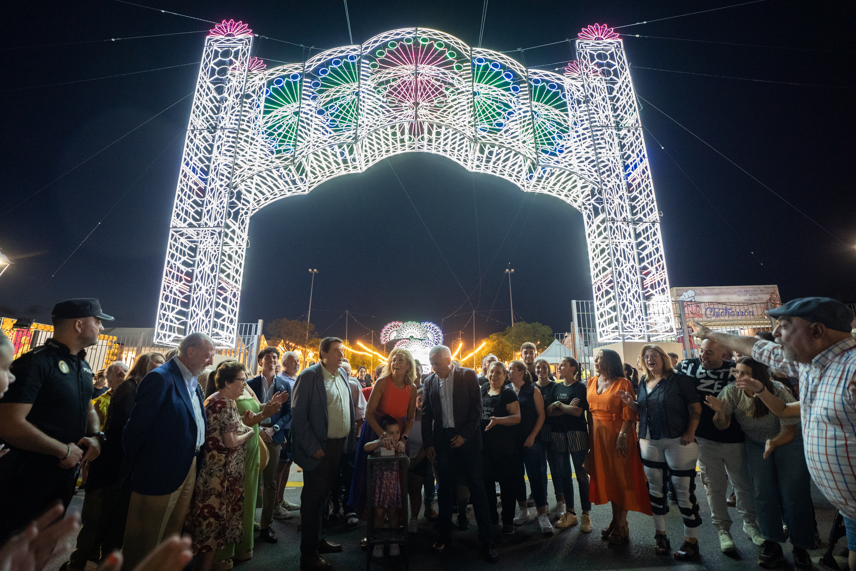 Castilleja de la Cuesta inauguró este jueves una nueva edición de su Feria, con gran éxito de público y con ganas de cuatro días de música, buena gastronomía y reencuentros. La alcaldesa, Carmen Herrera, acompañada de los/as empresarios y hosteleros/as que participan en la Feria pulsó el botón que encendió el alumbrado para dar comienzo a estos días tan esperados por vecinos y vecinas.