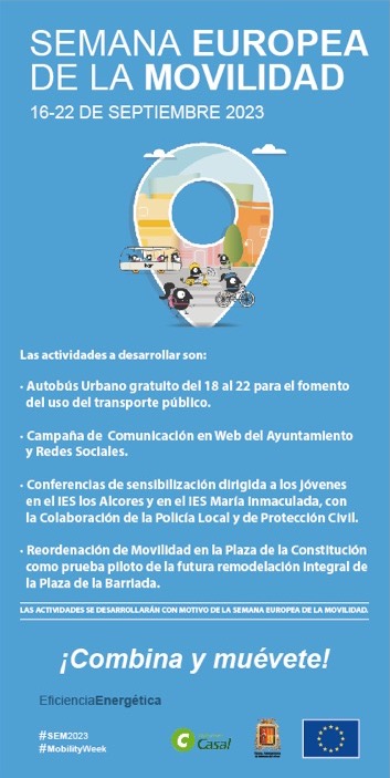 Las actividades de 2023 son la gratuidad del autobús urbano durante toda la semana, la puesta en marcha de una campaña de sensibilización y con la colaboración de la Policía Local y Protección Civil, se impartirán unas conferencias al alumnado de secundaria. Asimismo durante la SEM se cerrará al tráfico la calle Valeriano Bécquer, en el tramo comprendido por las calles Seguiriyas y Estébanez Calderón. Una prueba piloto de cara a la futura remodelación de la plaza Constitución.