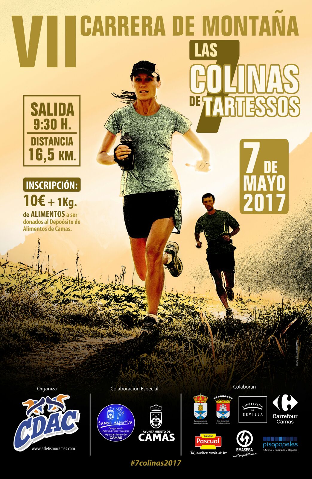 El próximo domingo 7 de mayo de 2017, se celebra la VII edición de la Carrera de Montaña, denominada como "7 Colinas de Tartessos", organizada por el Club Deportivo Atletismo Camas, con la colaboración del Ayuntamiento de Camas desde su delegación de Actividad Física y Deportes, en un entorno medioambiental único en la provincia de Sevilla.