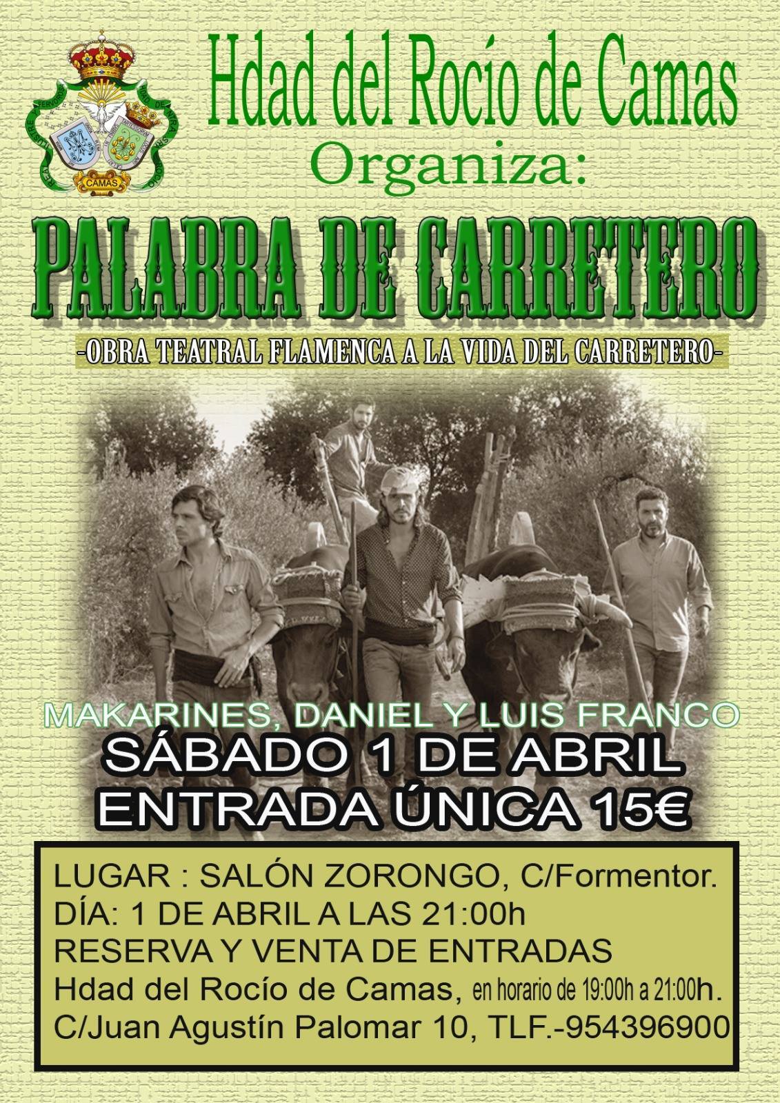 La Hdad del Rocío de Camas organiza la obra teatral flamenca a la vida del carretero "Palabra de