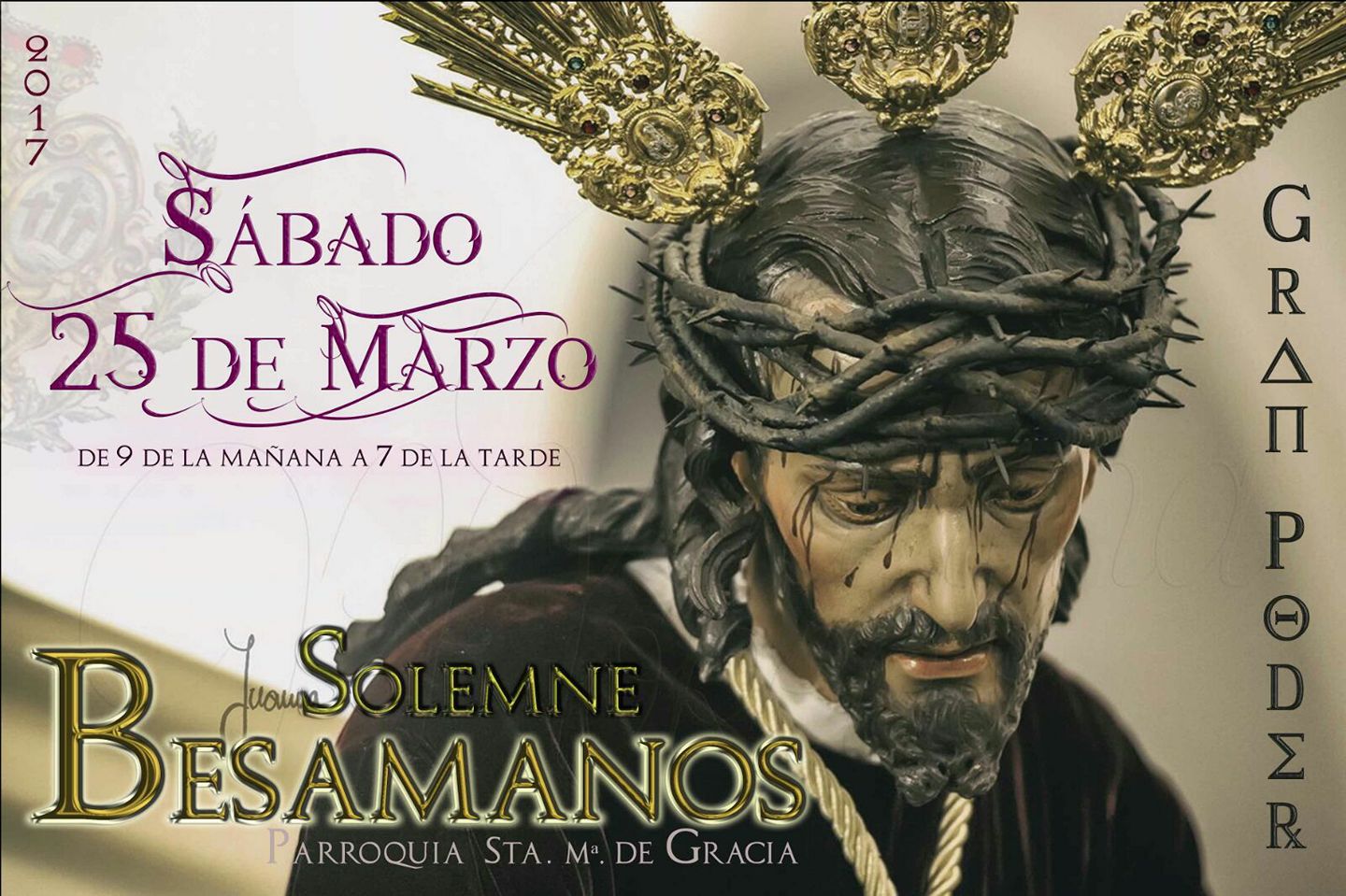 Titular Ntrº Padre Jesús del Gran Poder, en la Parroquia de Santa María de Gracia, de 9:00 horas a