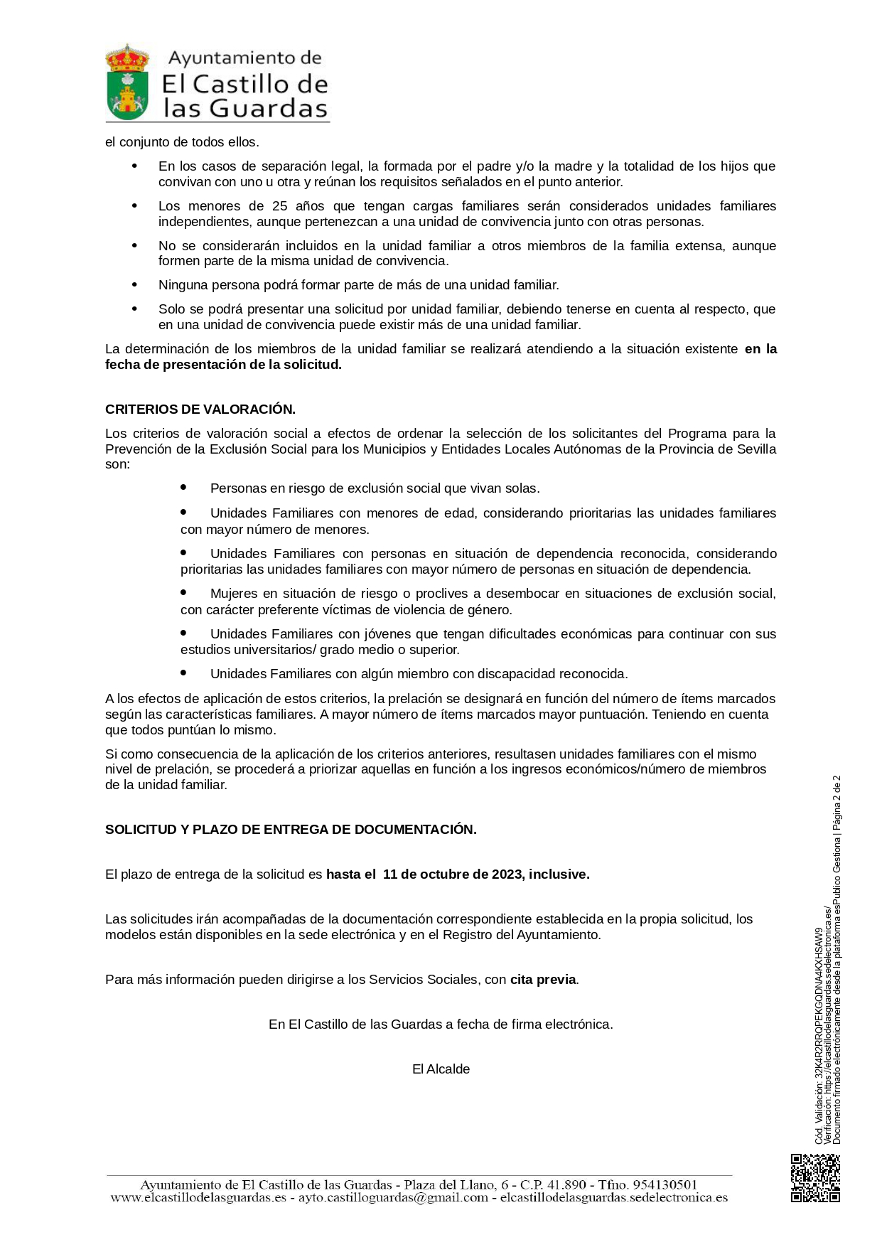 El plazo de entrega de la solicitud es hasta el 11 de octubre de 2023, inclusive. CITA PREVIA.