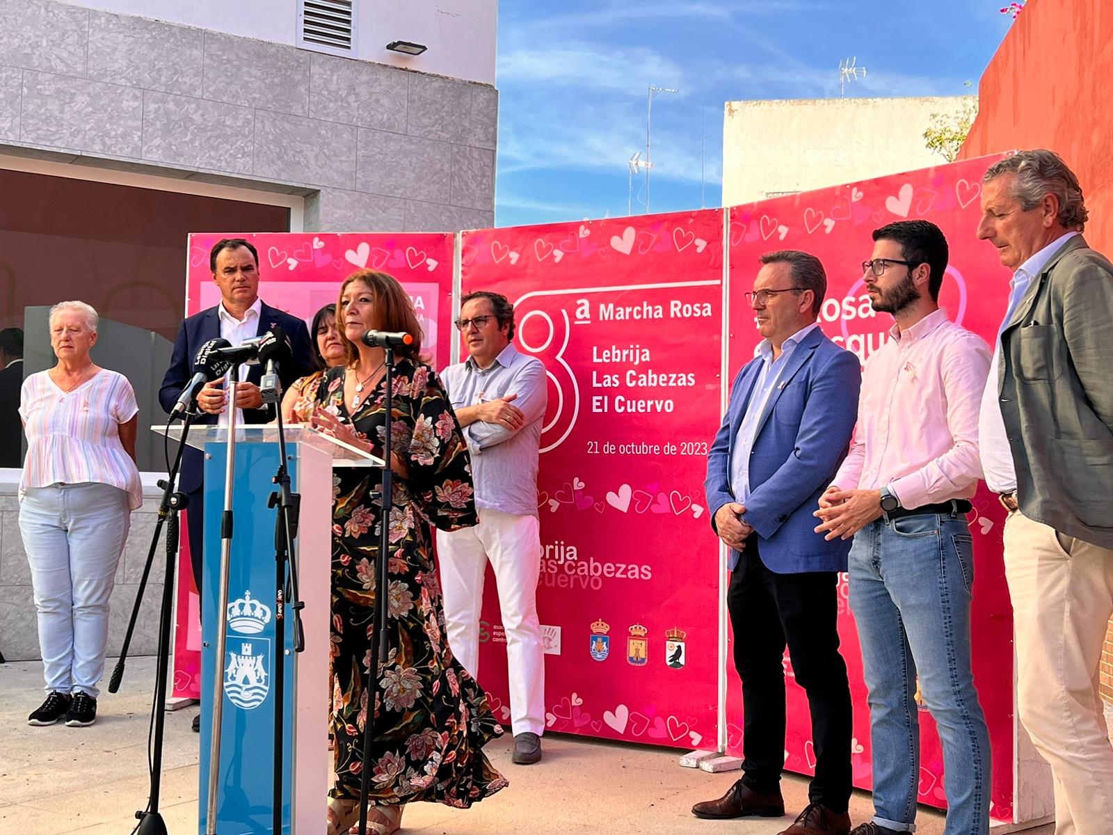 Este lunes, 2 de octubre, se presentó ante los medios de comunicación la que será la VIII Marcha Rosa Comarcal, organizada conjuntamente por los municipios de Lebrija, El Cuervo y Las Cabezas de San Juan. La ciudad vecina de Lebrija será la anfitriona de esta importante cita solidaria que se celebrará el 21 de octubre y en la que se espera congregar a más de 10.000 personas. Ya están a la venta las camisetas y dorsales para participar en esta actividad.