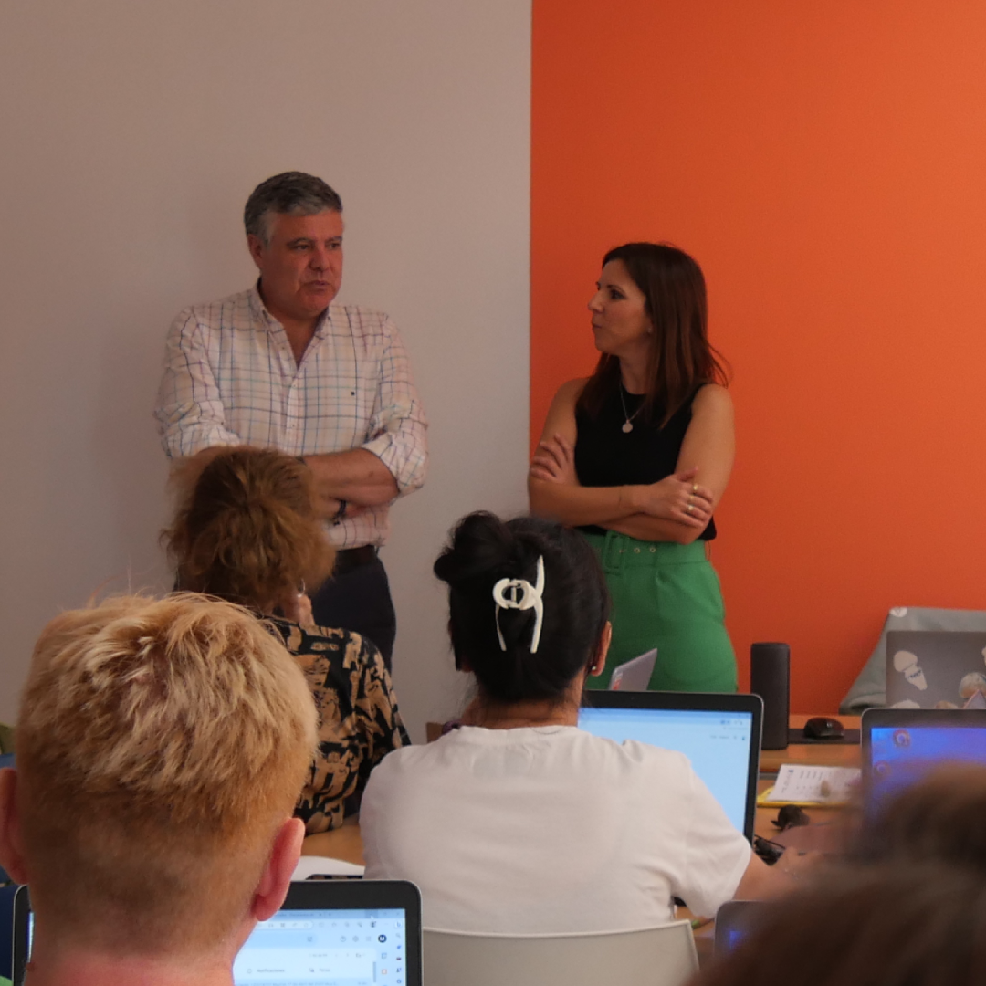 El alcalde, Juanma López, acompañado por el concejal de Innovación y Formación, Pablo Sánchez, han visitado a las alumnas del programa de capacitación y formación digital Preparadas, que permitirá a un grupo de mujeres desempleadas descubrir las posibilidades que la tecnología les ofrece para impulsar el desarrollo de su potencial laboral y profesional.