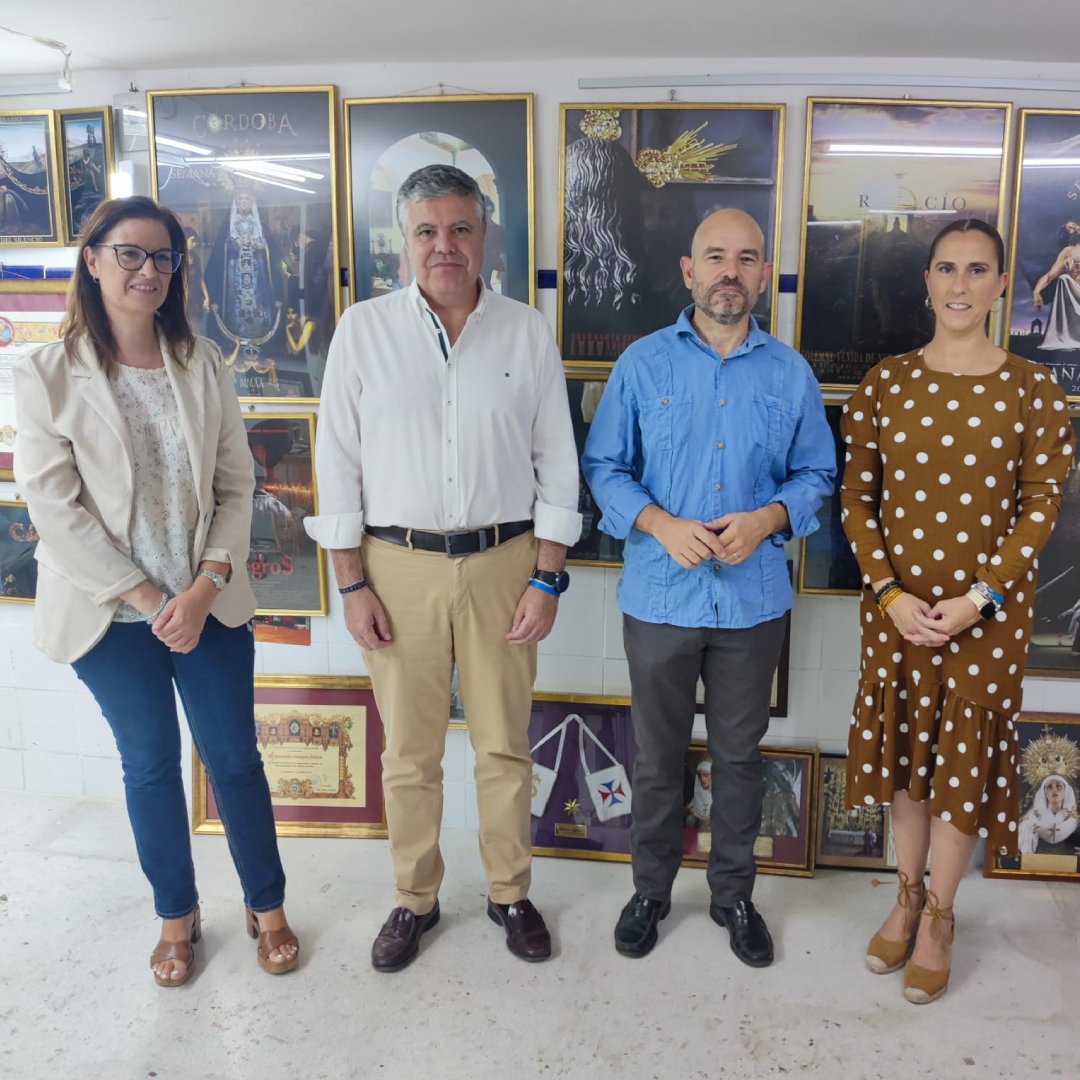 Esta mañana han mantenido una reunión de trabajo en el estudio del artista el alcalde, Juanma López, la concejala de Festejos, Inmaculada Galocha, y la diputada provincial, Gloria Guillén.