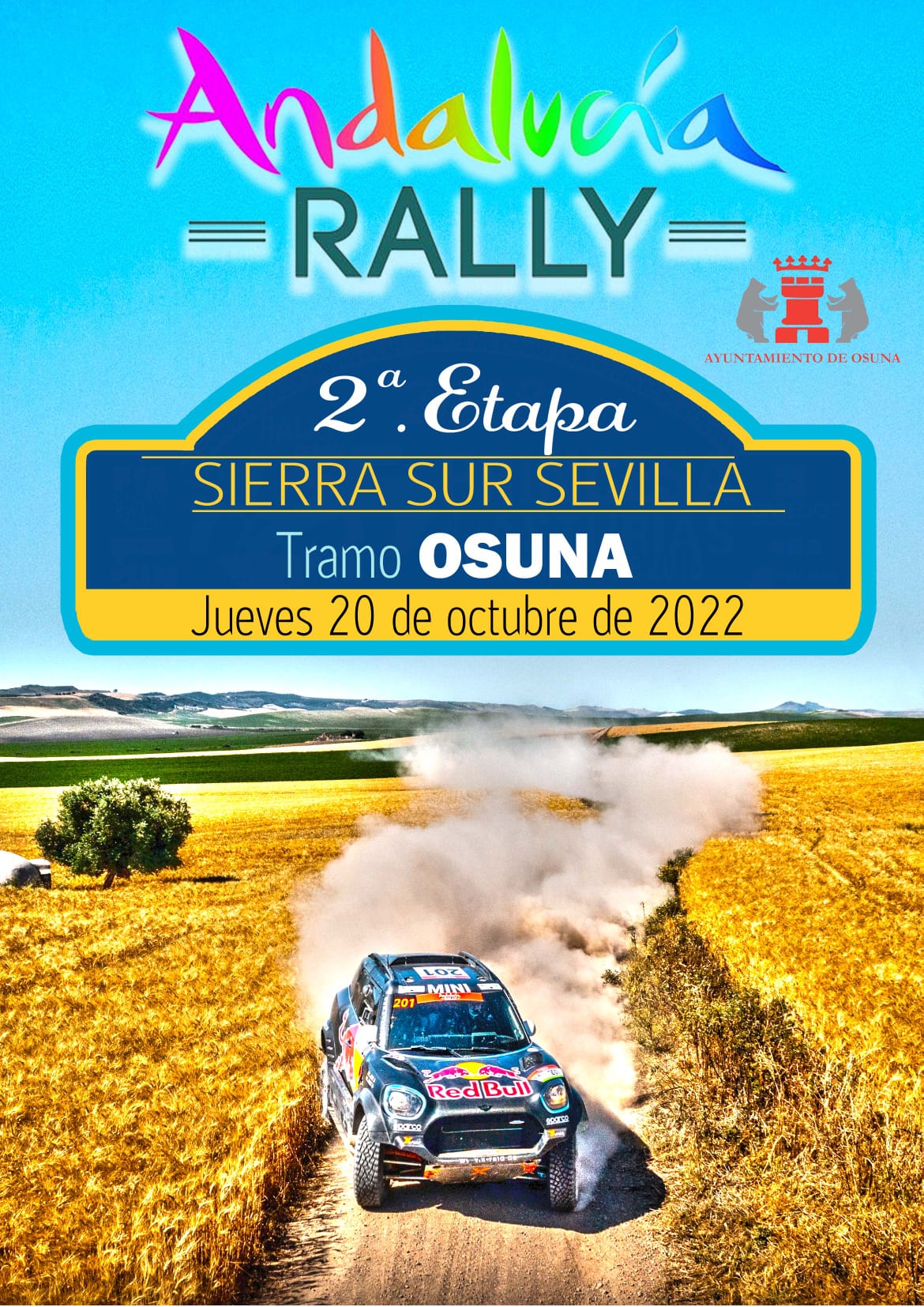 La segunda prueba del Andalucía Rally 2022 tendrá su salida en Osuna, el próximo jueves, 20 de octubre. Así lo ha anunciado el delegado municipal de Deportes del Ayuntamiento de Osuna, Benito Eslava, quien ha manifestado que, por tercer año consecutivo, Osuna va a ser protagonista "de la prueba más importante de este tipo de competiciones en toda la historia de Andalucía y de España", siendo un espectacular evento deportivo, organizado una edición más por el expiloto David Castera, como director del mismo y para lo cual se cuenta con la colaboración del Ayuntamiento de Osuna."