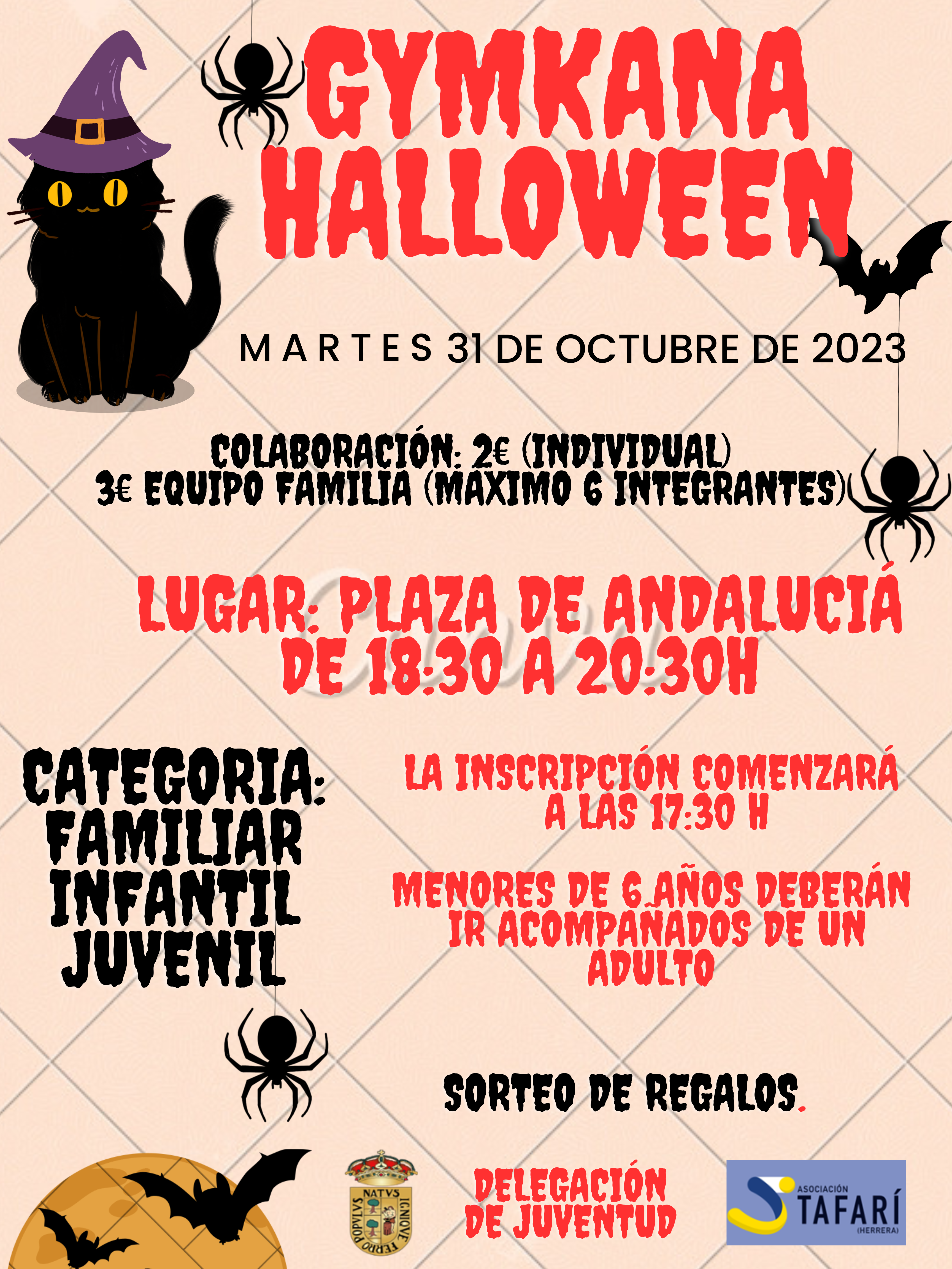Se ha previsto que, el martes 31 de octubre se celebre una gymkana de Halloween por las distintas plazas de la localidad. La salida se realizará a las 18:30 horas desde la Plaza de Andalucía, finalizando a las 20:00 horas en el mismo lugar. Una vez concluida dicha gymkana, habrá baile y sorteo de regalos.
