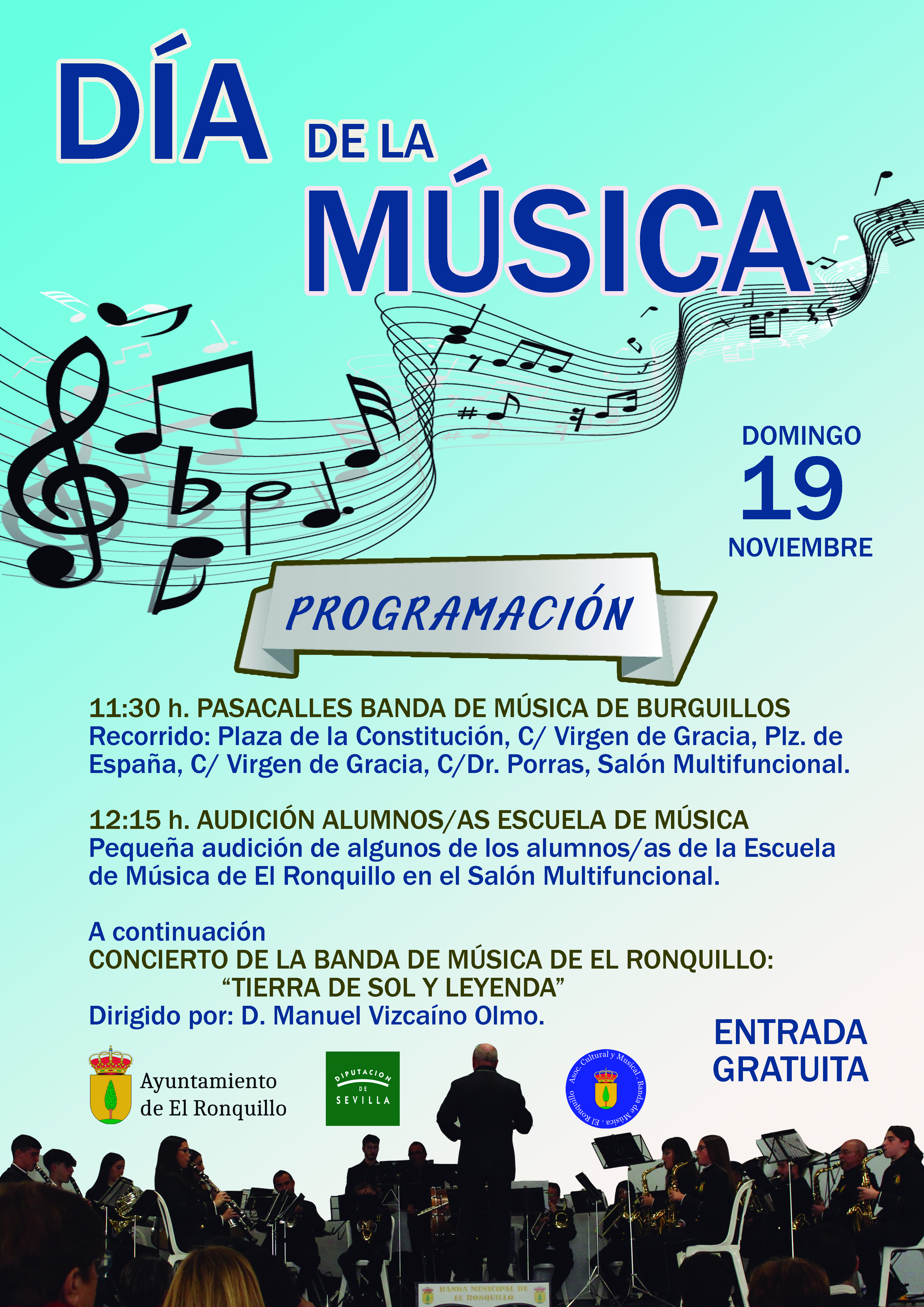 La asistencia a estas actividades organizadas por el Ayuntamiento de El Ronquillo y la Asociación Cultural y Musical Banda de Música de El Ronquillo con la colaboración de la Diputación de Sevilla es totalmente gratuita.