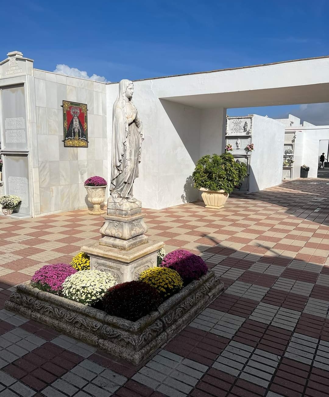Ayer la Alcaldesa comprobaba el estado del cementerio, que es un hervidero estos días de personas que practican el respeto a los que se nos fueron. Hoy luce un poco más agradable con las flores instaladas en la plaza central.