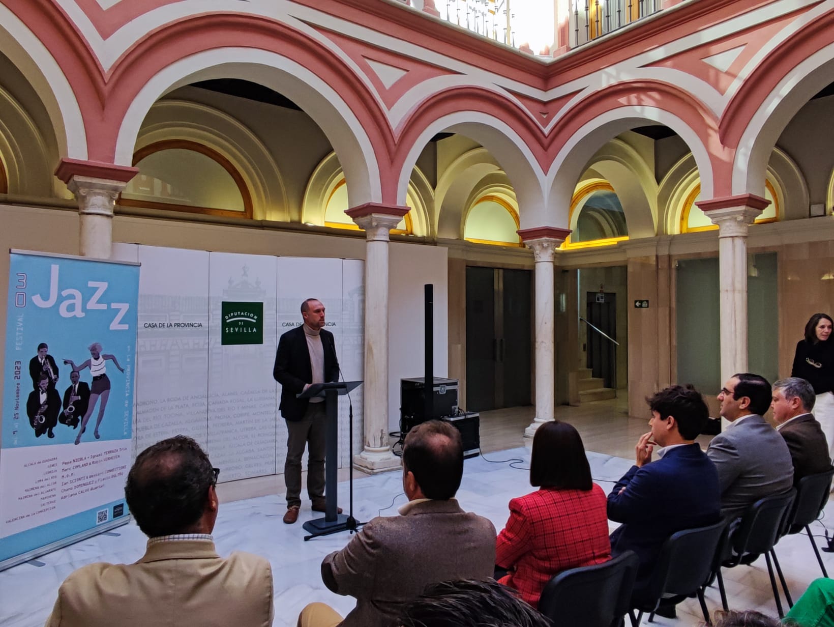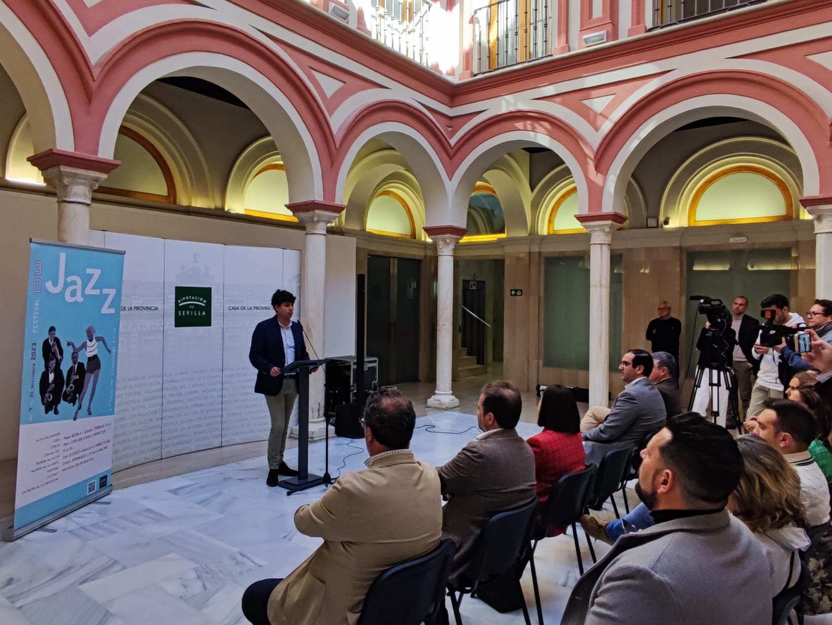 El diputado provincial de Cultura y Ciudadanía, Casimiro Fernández, ha presentado hoy en la Casa de la Provincia el Festival de Jazz de la Diputación de Sevilla.