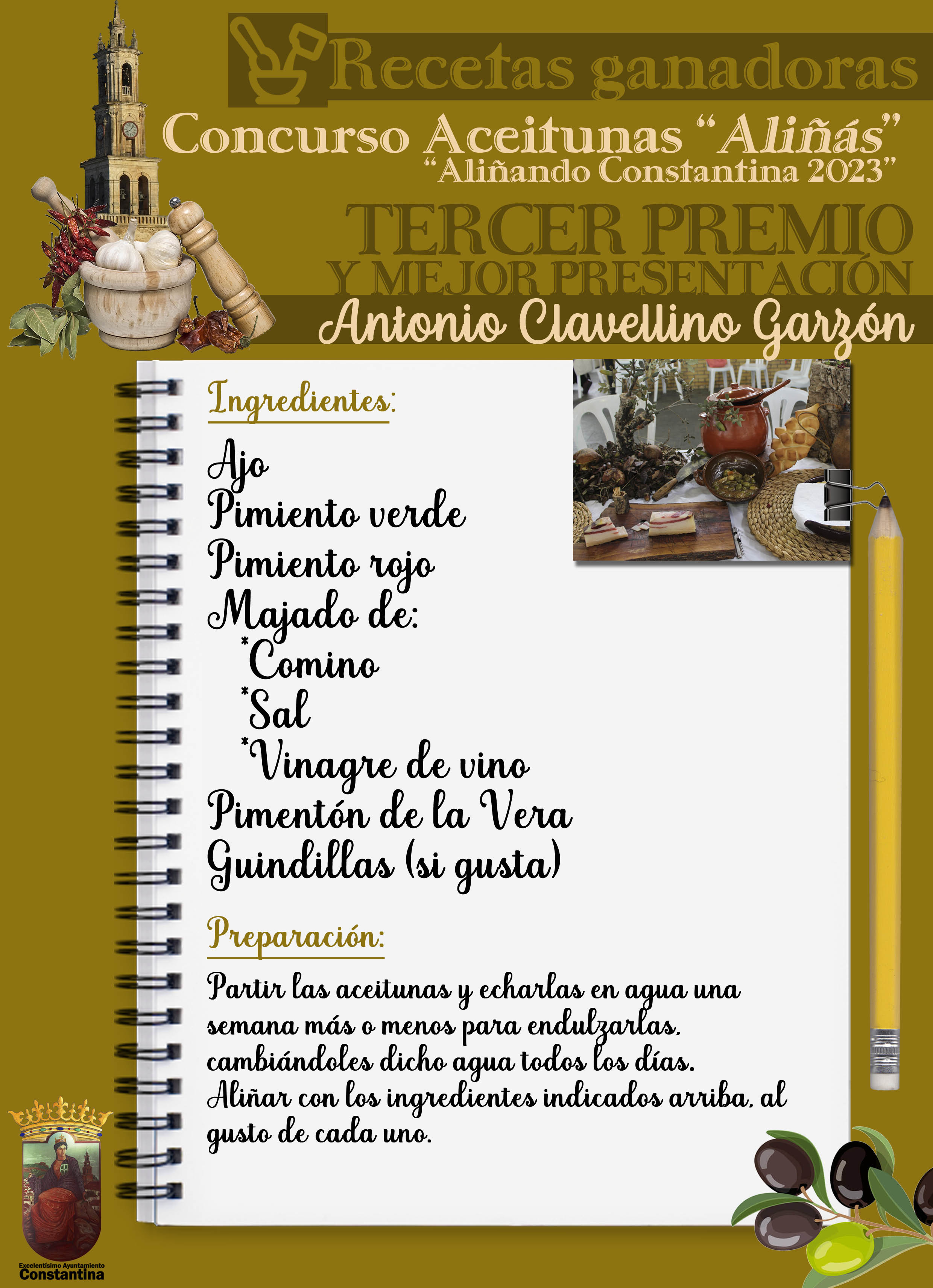 RECETA DEL 3º PREMIO Y MEJOR PRESENTACIÓN DEL I CONCURSO DE ACEITUNAS ALIÑÁS "ALIÑANDO CONSTANTINA 2023"