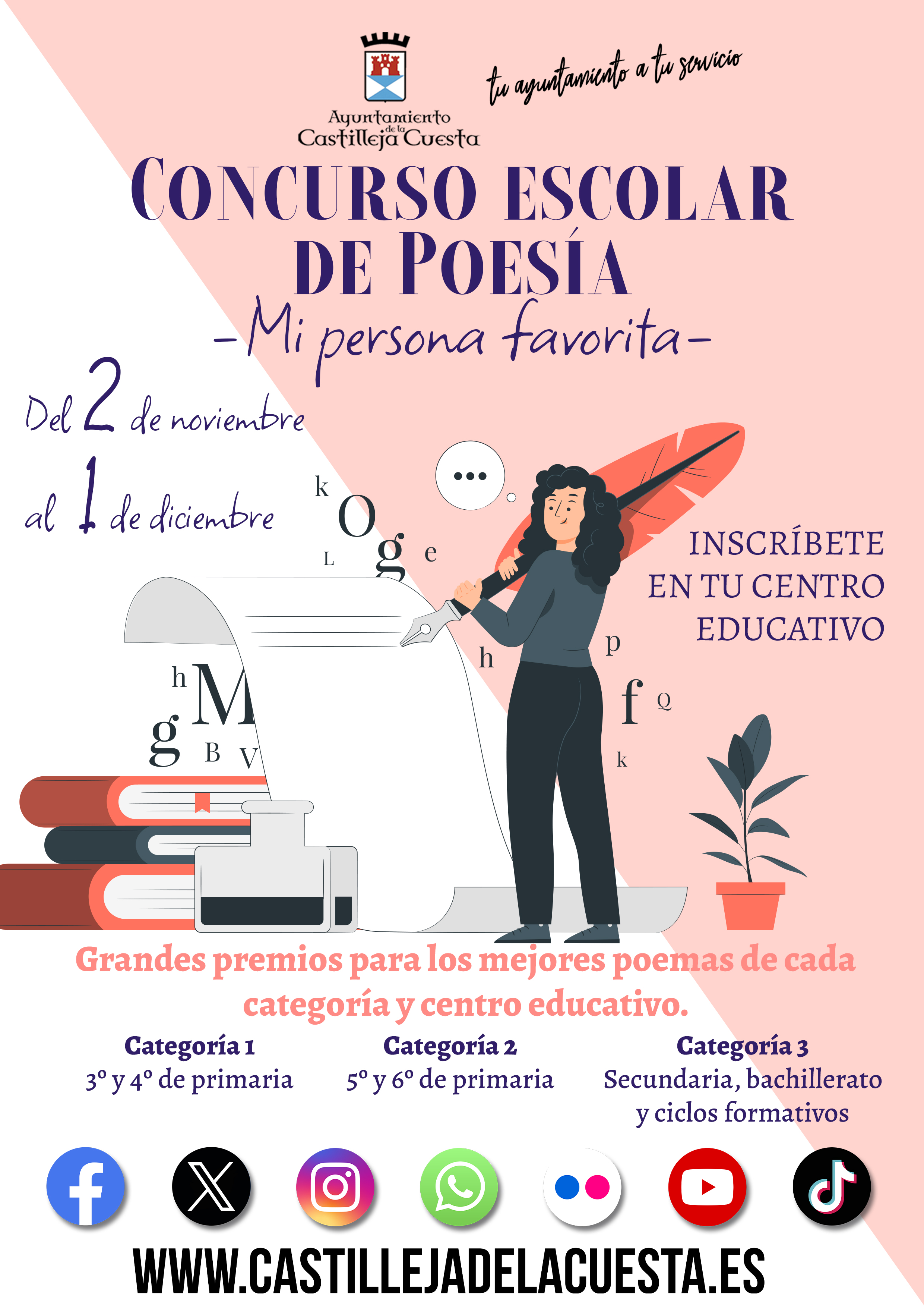 Imagen Ubicación Categoría noticia Ciudadanía Mostrar en el carrusel de la sección No Fecha Jue, 09/11/2023 - 14:41 Más información http://www.castillejadelacuesta.es/es/actualidad/noticias/IV-Concurso-de-Poesia…