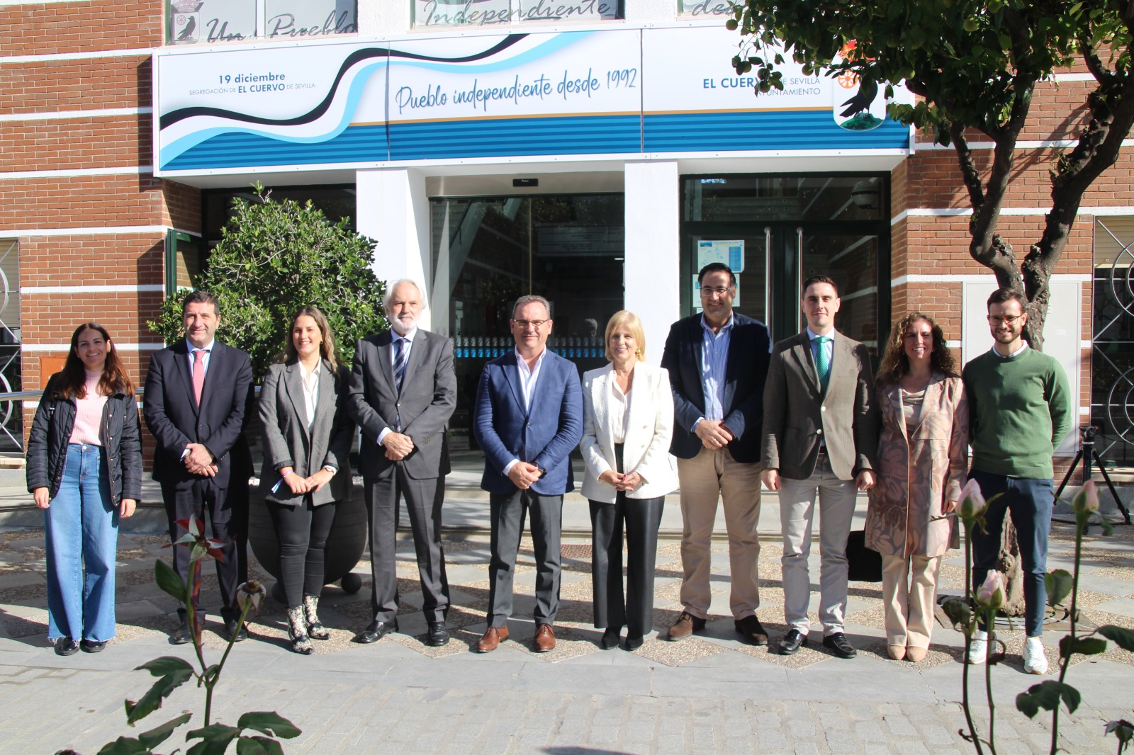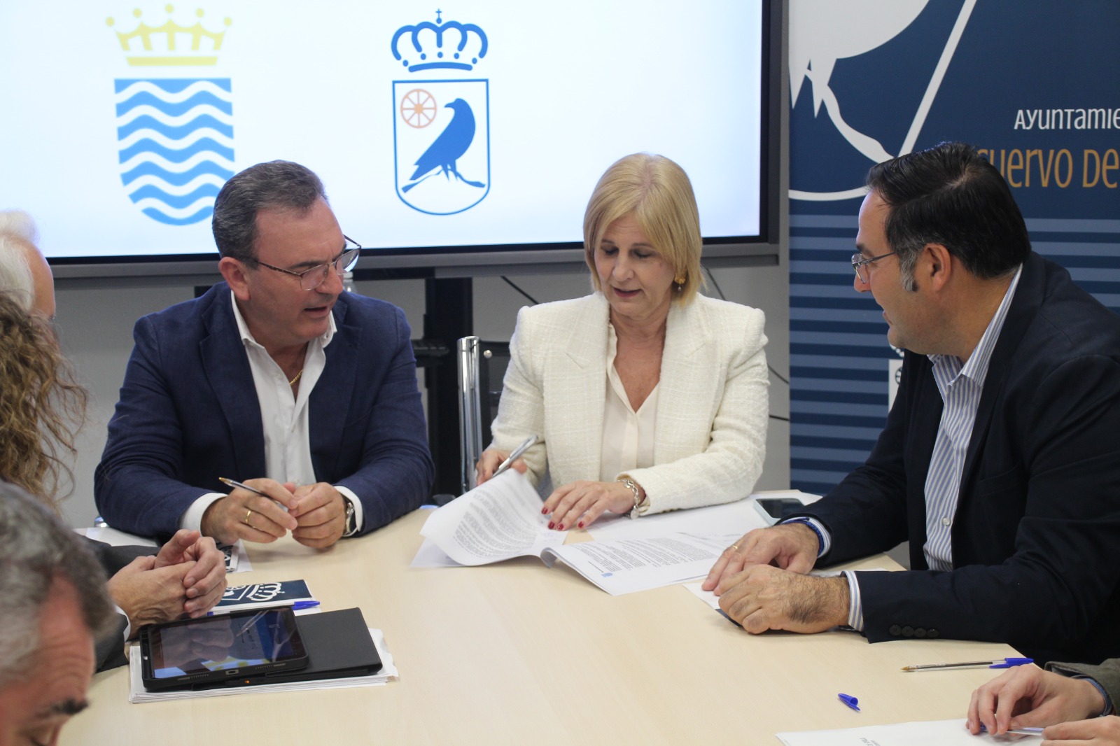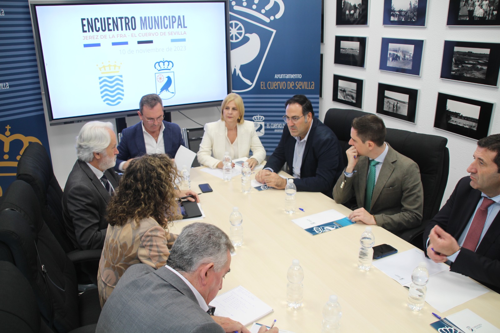 La alcaldesa de Jerez de la Frontera y Presidenta de la FEMP Mª José García-Pelayo ha visitado nuestro municipio, acompañada por parte de su equipo, para tratar varios temas con el Alcalde José Manuel Oliva en el que están implicados ambos municipios. En concreto, además de firmar el convenio de prestación de servicios a los vecinos y vecinas cuyas viviendas se ubican en término municipal jerezano, ambos ediles centraron esta reunión en analizar la propuesta de permuta de alteración de los términos municipales que nuestro Ayuntamiento ha planteado al de Jerez. Hay que reseñar que en el 19 de diciembre de 2019 y el 23 de enero de 2020, los dos Consistorios aprobaron por Pleno el Inicio de Expediente para la alteración del término municipal de El Cuervo lindando con el término municipal de Jerez, afectando a las provincias de Sevilla y Cádiz. Un inicio de expediente que responde a una demanda de adhesión a nuestro término que vienen solicitando aproximadamente 250 vecinos afectados por la circunstancia de que sus viviendas se encuentran físicamente entre dos las provincias, concretamente las ubicadas a partir de la vivienda nº 66 de la Avenida de Cádiz y la calle Huerto Juncal y sobre la que el Ayuntamiento de El Cuervo encargándose de prácticamente todos los servicios públicos, teniendo en cuenta que los vecinos afectados tributan en Jerez y ejercen su derecho a voto en una pedanía jerezana.