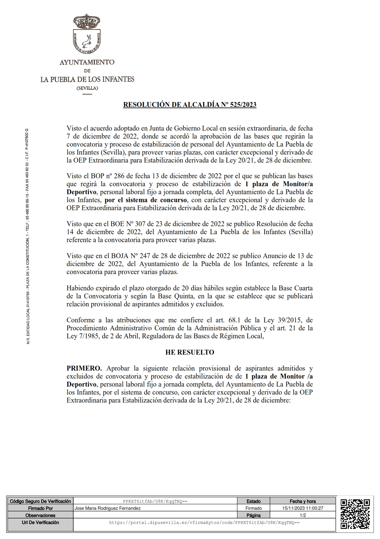 Imagen Imágenes Ubicación Categoría noticia Empleo Mostrar en el carrusel de la sección No Fecha Mié, 15/11/2023 - 12:20 Más información http://www.lapuebladelosinfantes.es/es/actualidad/noticias/Relacion-provisional…