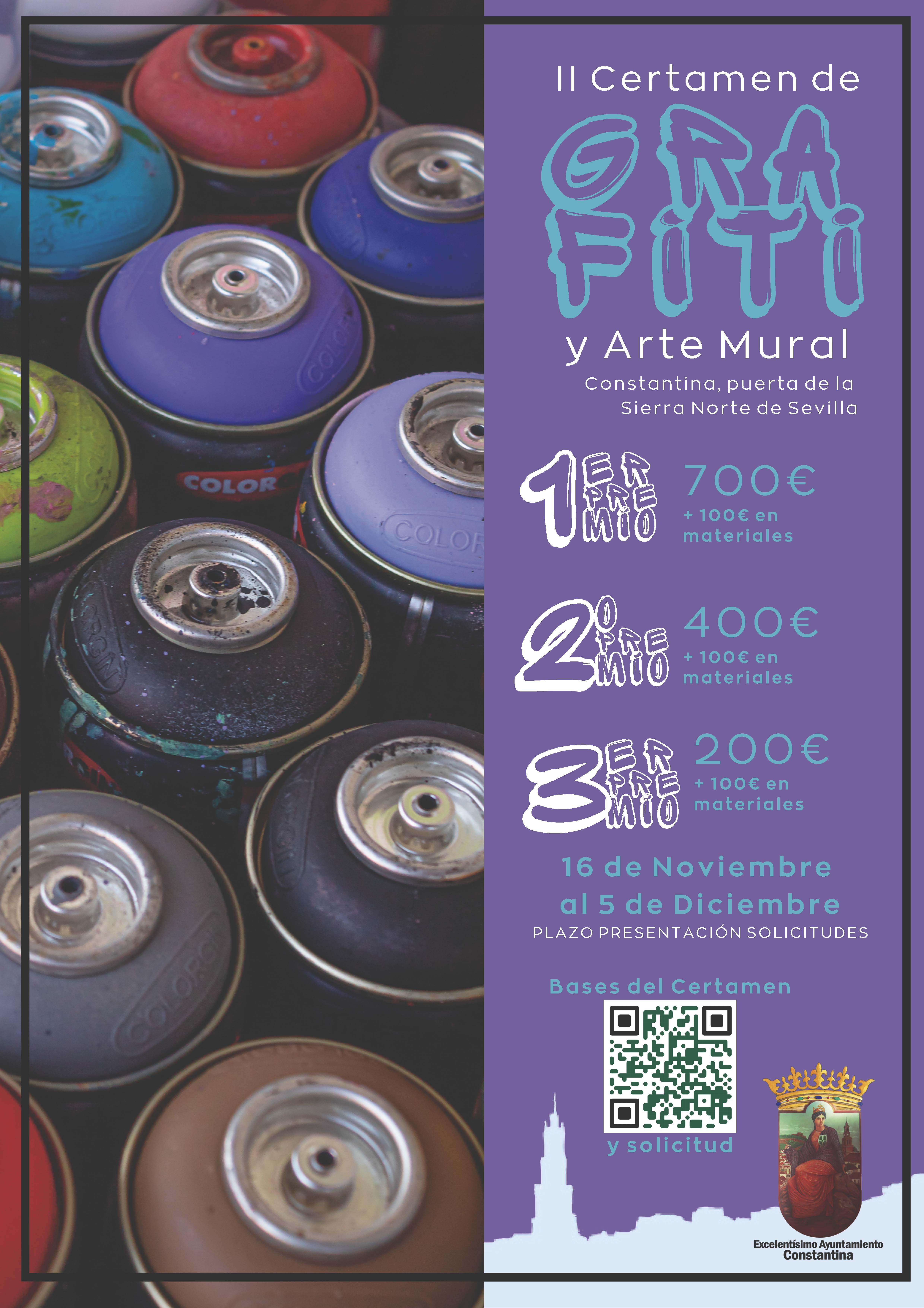 El Excmo. Ayuntamiento de Constantina, a través de sus Delegaciones de Cultura y de Juventud convocan el II Certamen de Grafiti y Arte Mural: Constantina, puerta de la Sierra Norte de Sevilla.