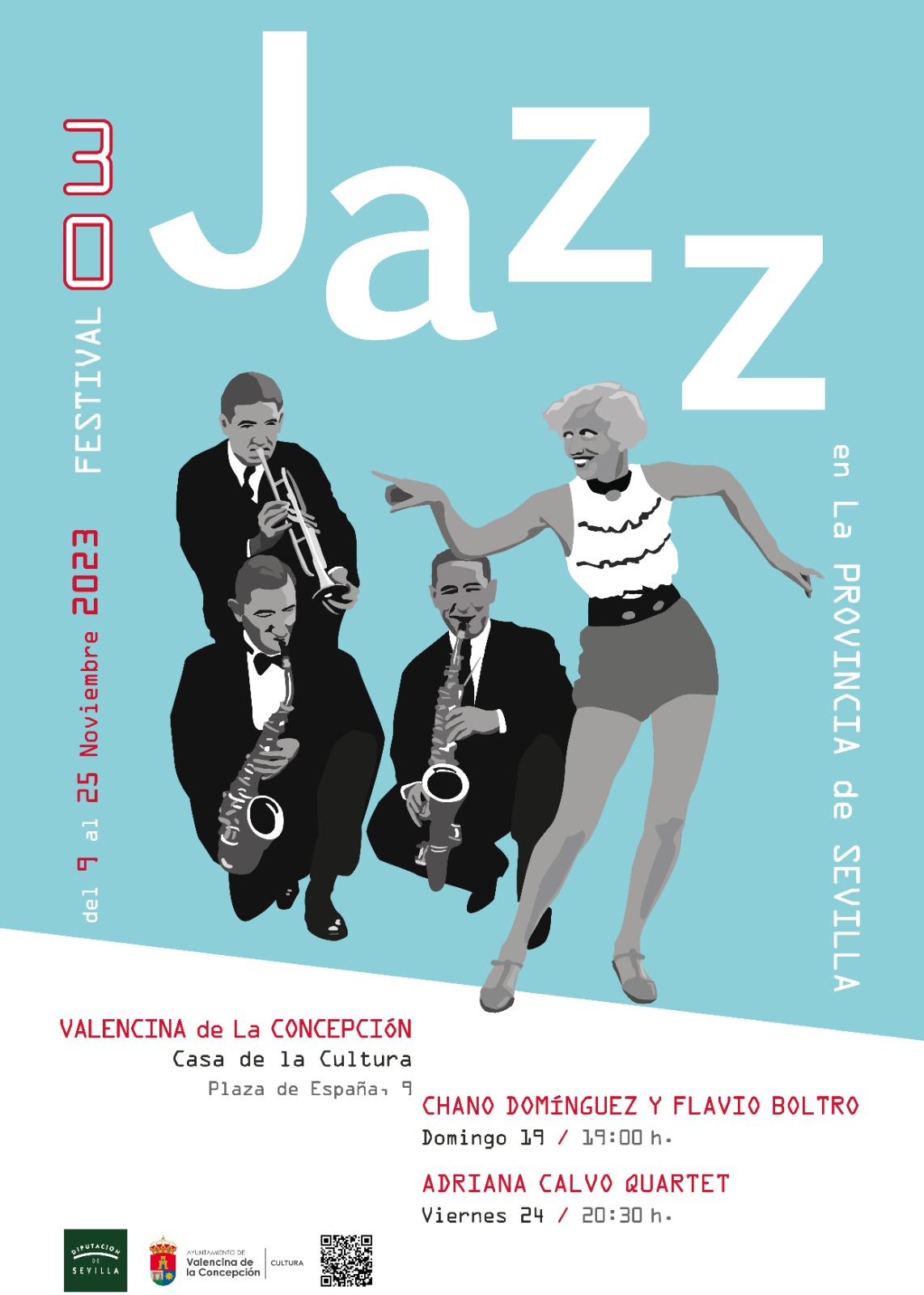 Y el viernes 24 de noviembre a las 20:30 horas, ADRIANA CALVO 4TET: Actualmente Adriana está terminando el grado superior en Ámsterdam y viaja a España cada vez que tiene oportunidad de tocar en proyectos con la Andalucía Big Band, la Valparaíso Big Band, el Carnaval de los Animales en el festival de Jazz de Cádiz en 2022, los Premios Max 2023 o el Festival de Jazz de Cádiz de 2023 con su propio grupo. Adriana Calvo Group se compone de un grupo de cuatro músicos y entre todos tocan composiciones originales de cada uno, fusionando en algunos temas el flamenco con el jazz. También tocan temas de Jackie McLean, Benny Golson, Wayne Shorter, entre otros. Ellos son: Carlos Villoslada "Caba", baterista de Cádiz, José López, contrabajista de Cádiz y residente en Barcelona y Mikel Legasa, pianista de Huesca que actualmente estudia piano jazz en el Conservatorium van Amsterdam. Las entradas tienen un coste de 3 euros para cada concierto y pueden adquirirse en la Secretaría de la Casa de la Cultura.